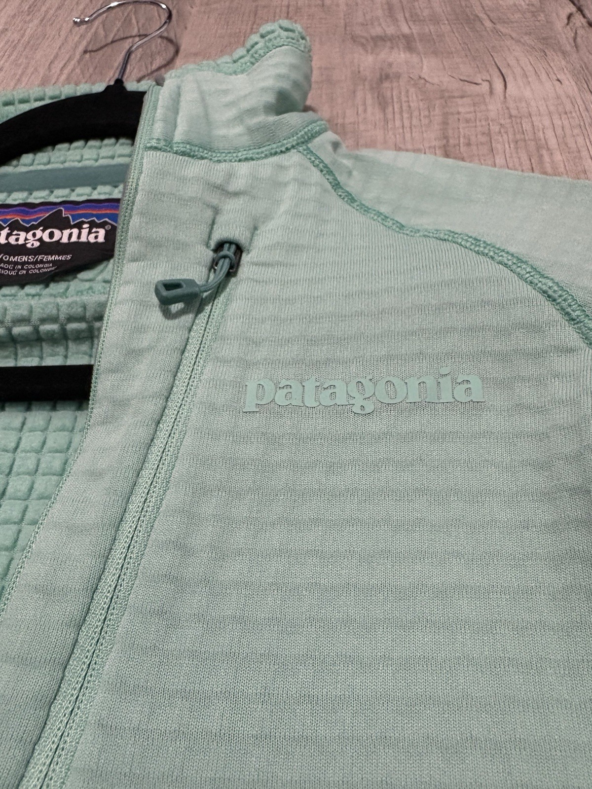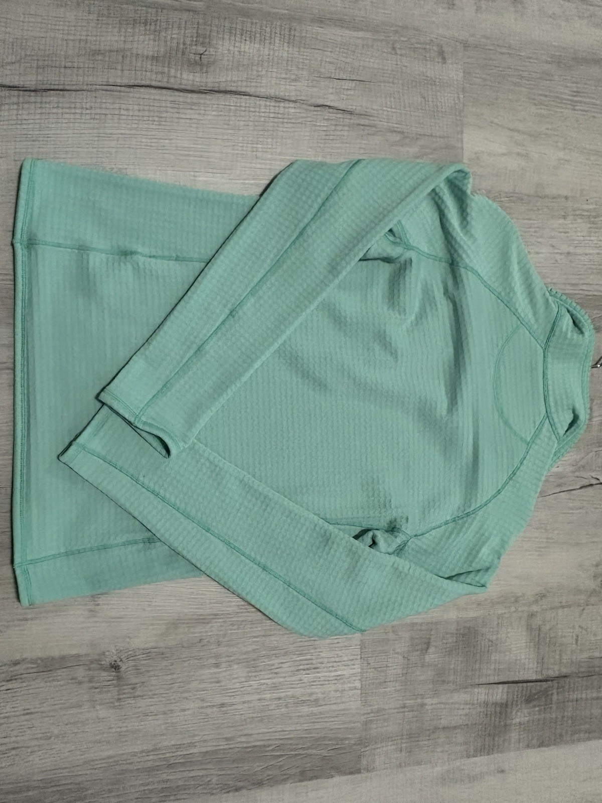 как выглядит Patagonia Womens R1 Medium 1/2 Zip with Pocket Light Green Jacket Size Medium фото