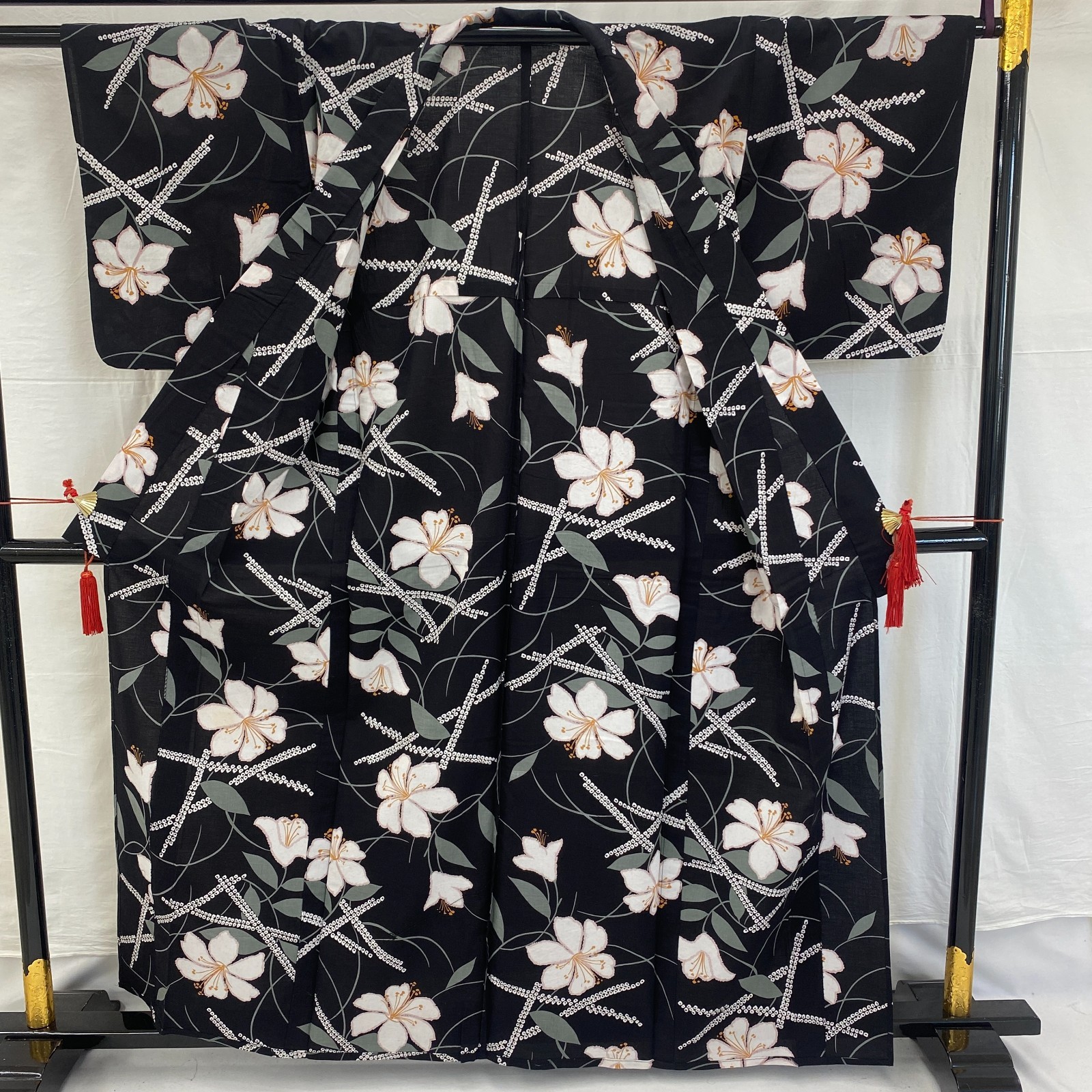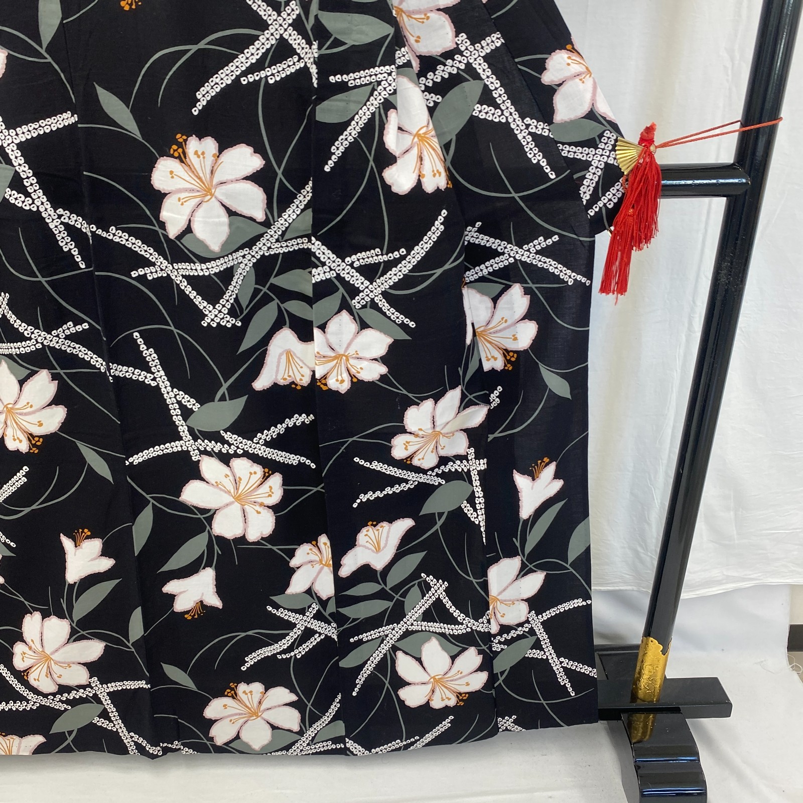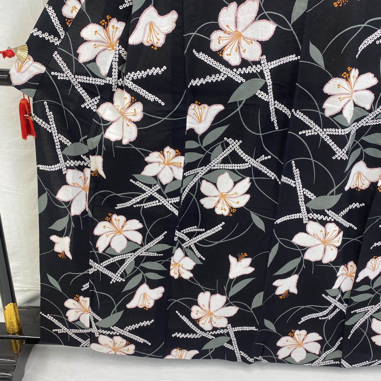как выглядит Japanese Vintage Kimono Yukata Black No Lining Traditional Authentic Length 62in фото