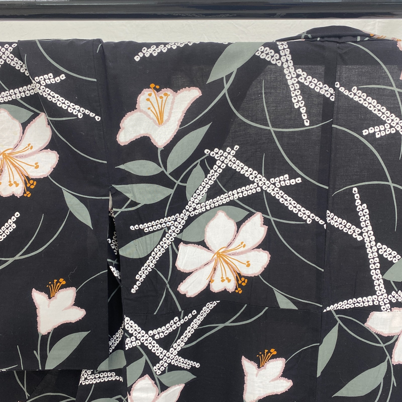 Japanese Vintage Kimono Yukata Black No Lining Traditional Authentic Length 62in