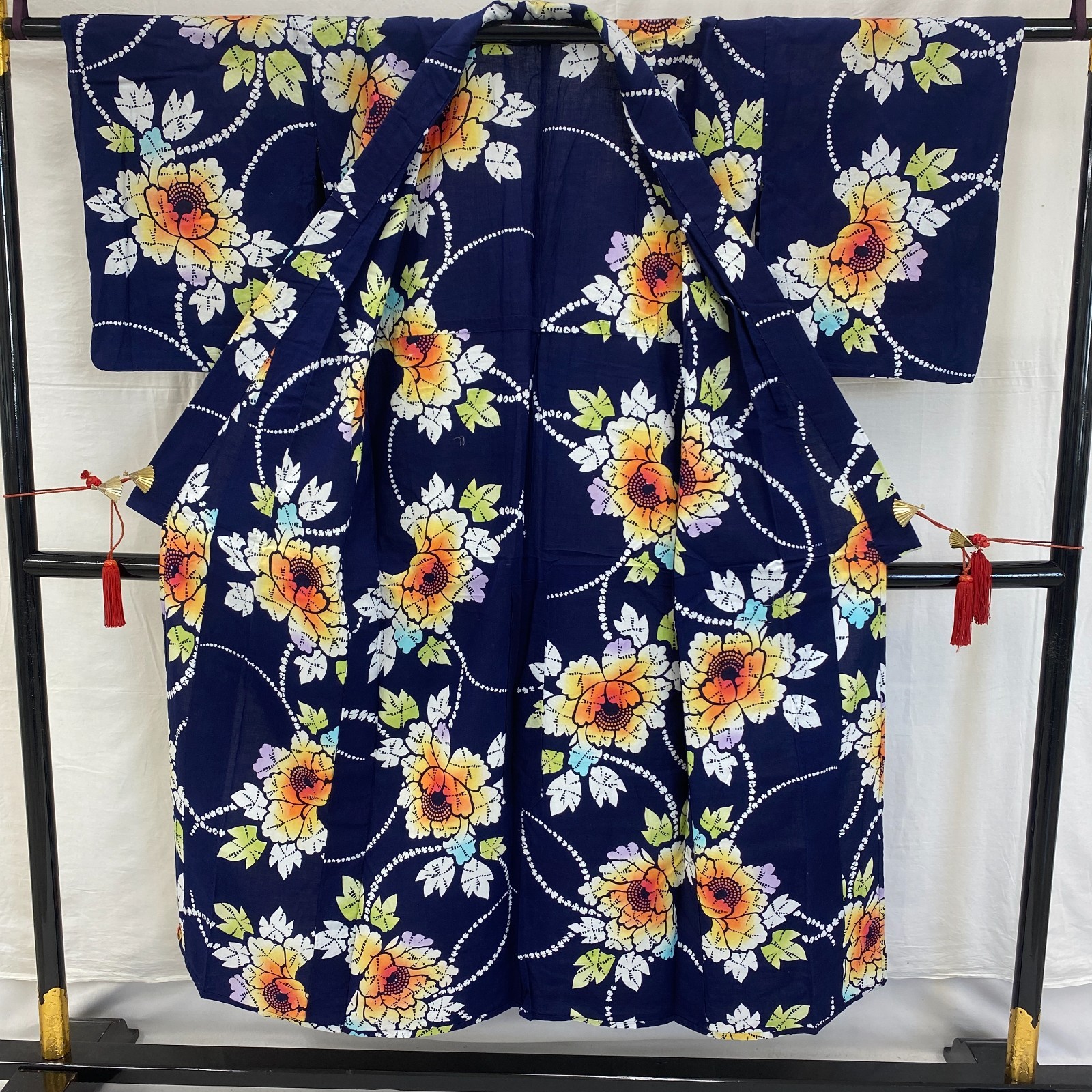 как выглядит Japanese Vintage Kimono Yukata Navy No Lining Traditional Authentic Length 57in фото