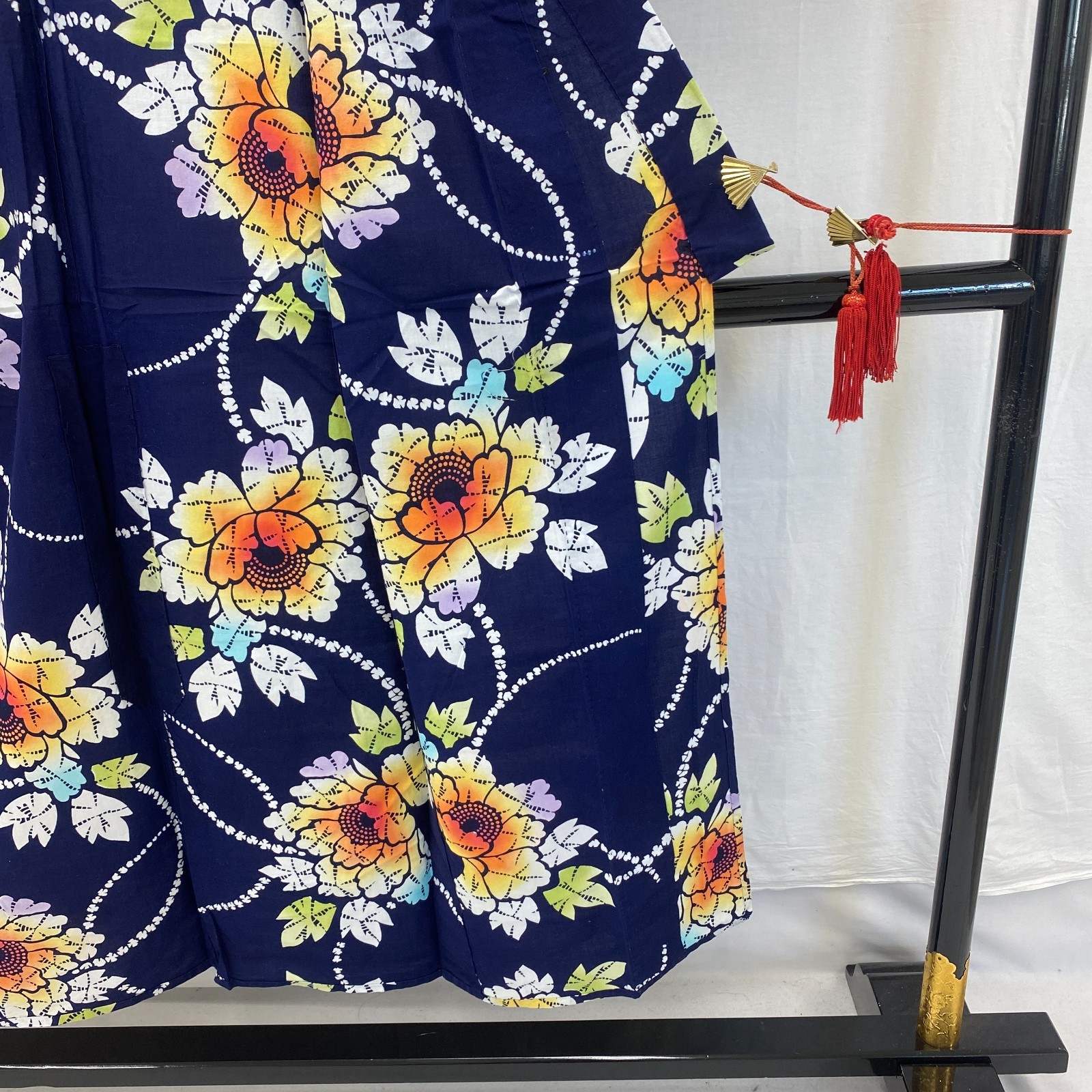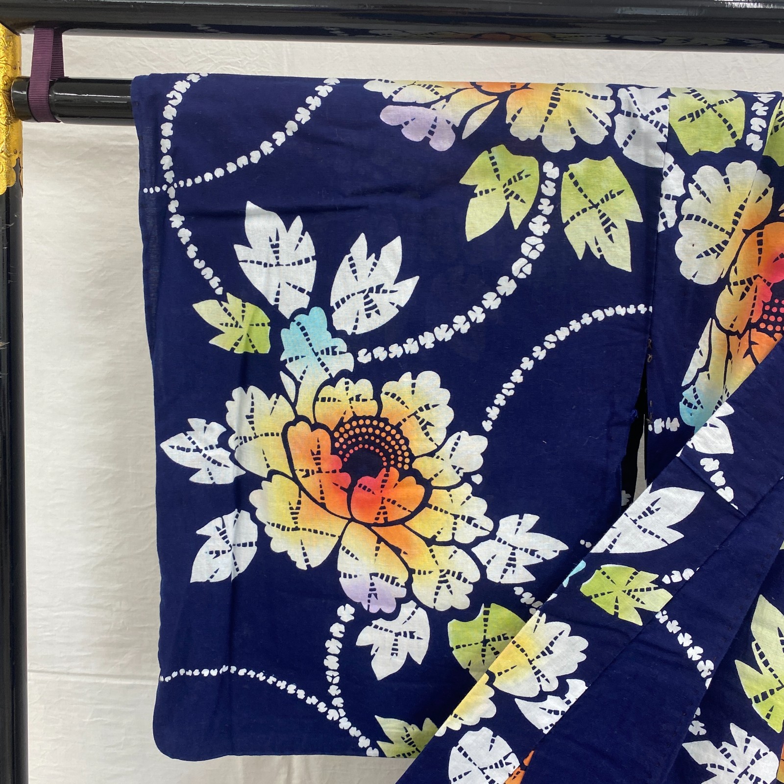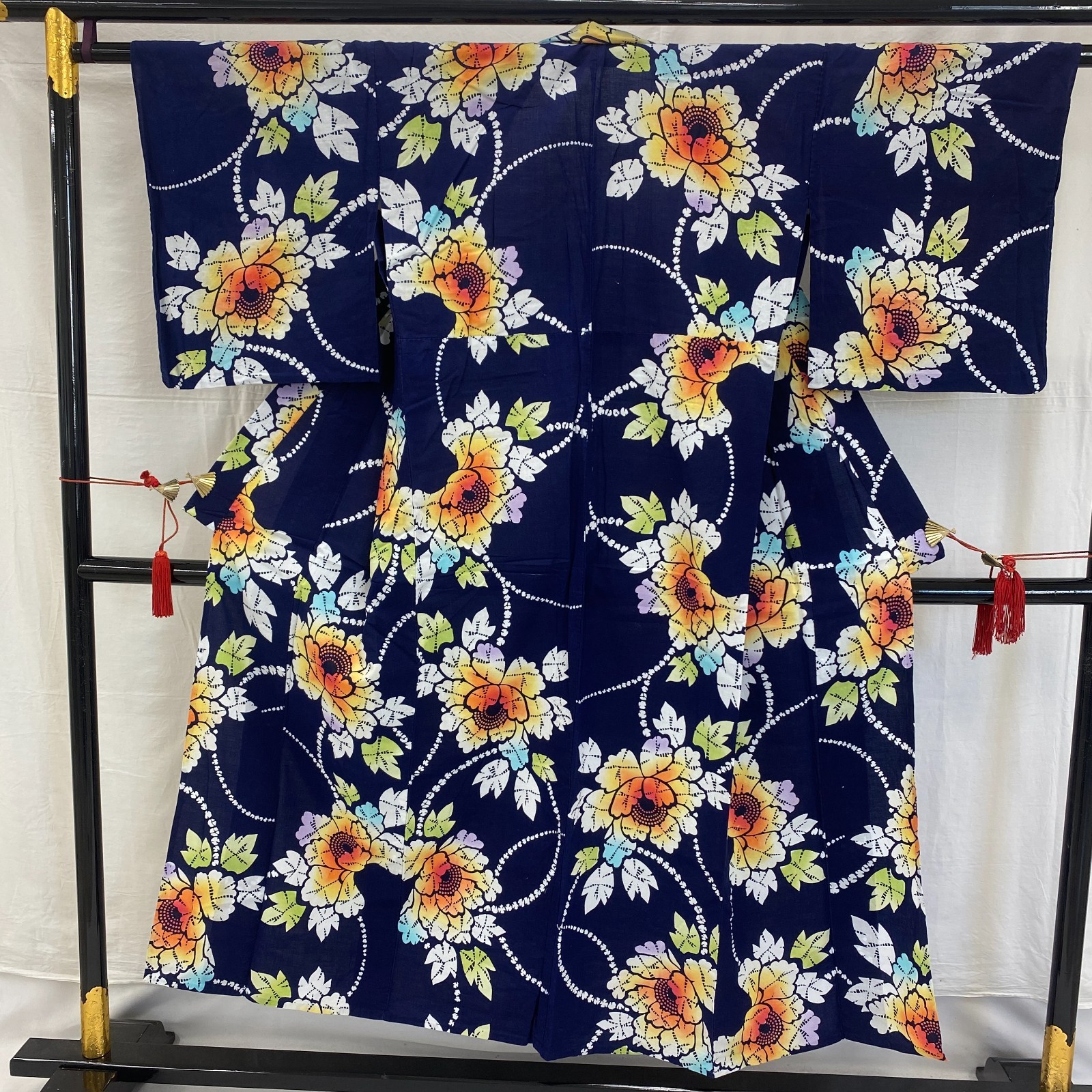Japanese Vintage Kimono Yukata Navy No Lining Traditional Authentic Length 57in