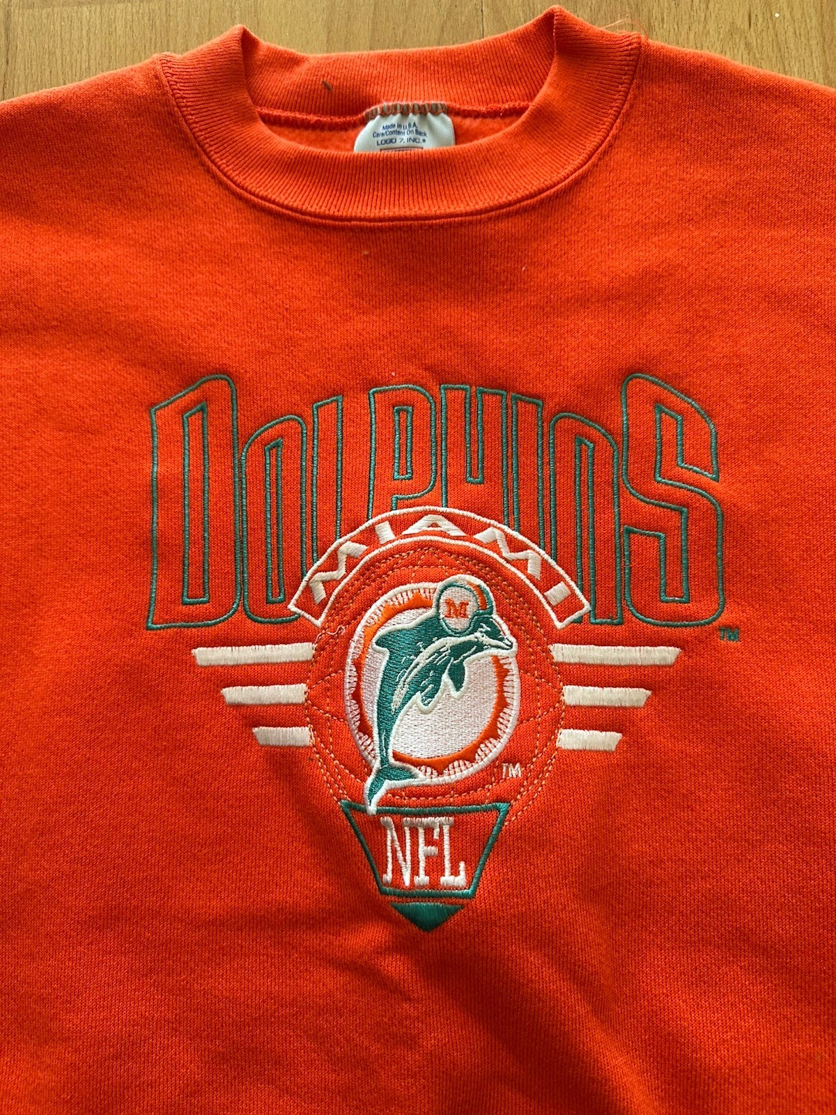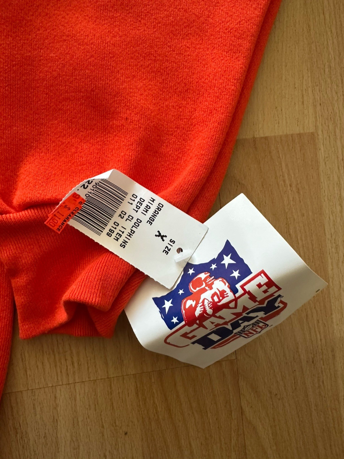 • Vintage 90s Logo 7 Miami Dolphins Pullover Crewneck Orange Sweatshirt NFL XL NWT