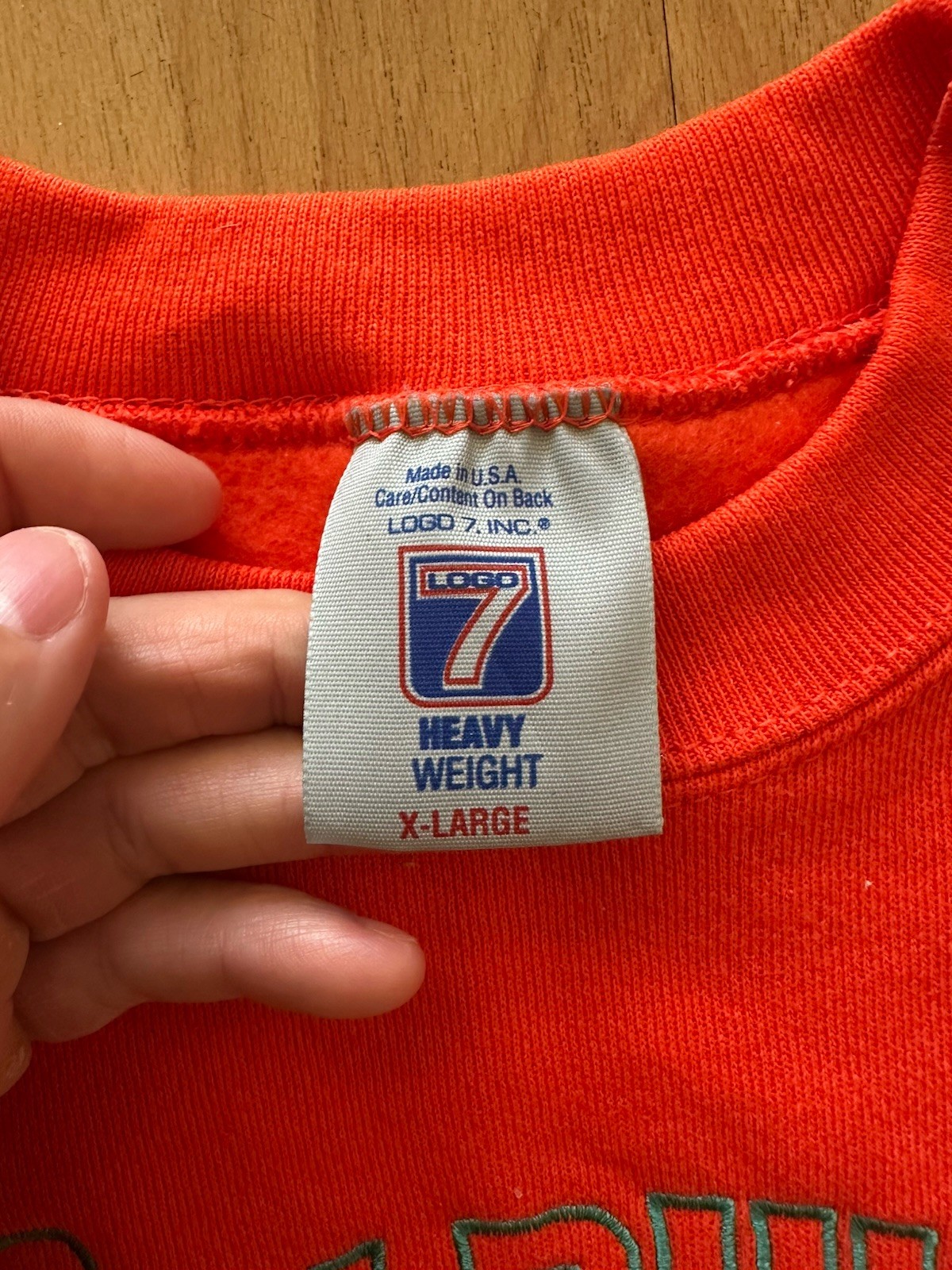 как выглядит Vintage 90s Logo 7 Miami Dolphins Pullover Crewneck Orange Sweatshirt NFL XL NWT фото