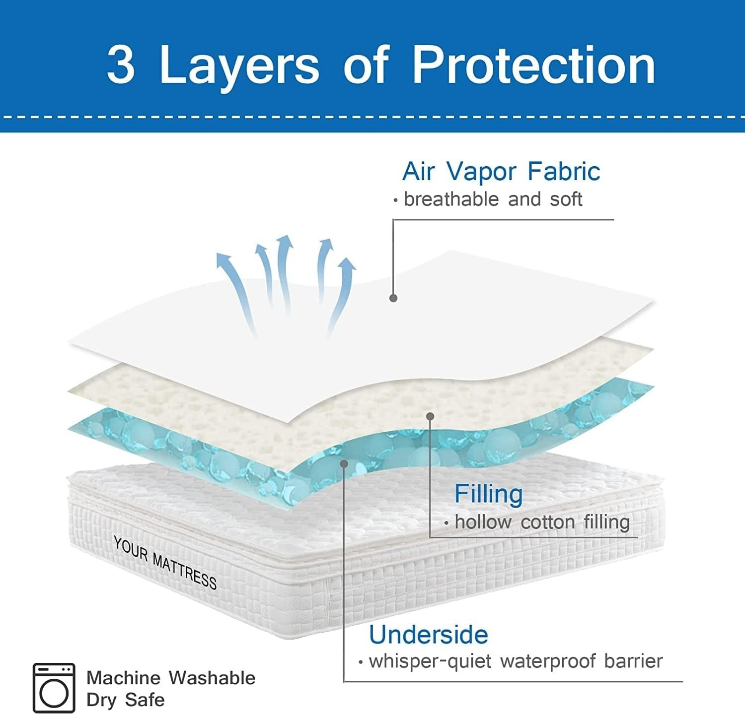 Особенности: Deep Fitted, Machine Washable, Quilted, Stain Resistant, Waterproof, Absorbent, Skin Friendly, Stretchable, Ultra Soft, Breathable, Comfortable