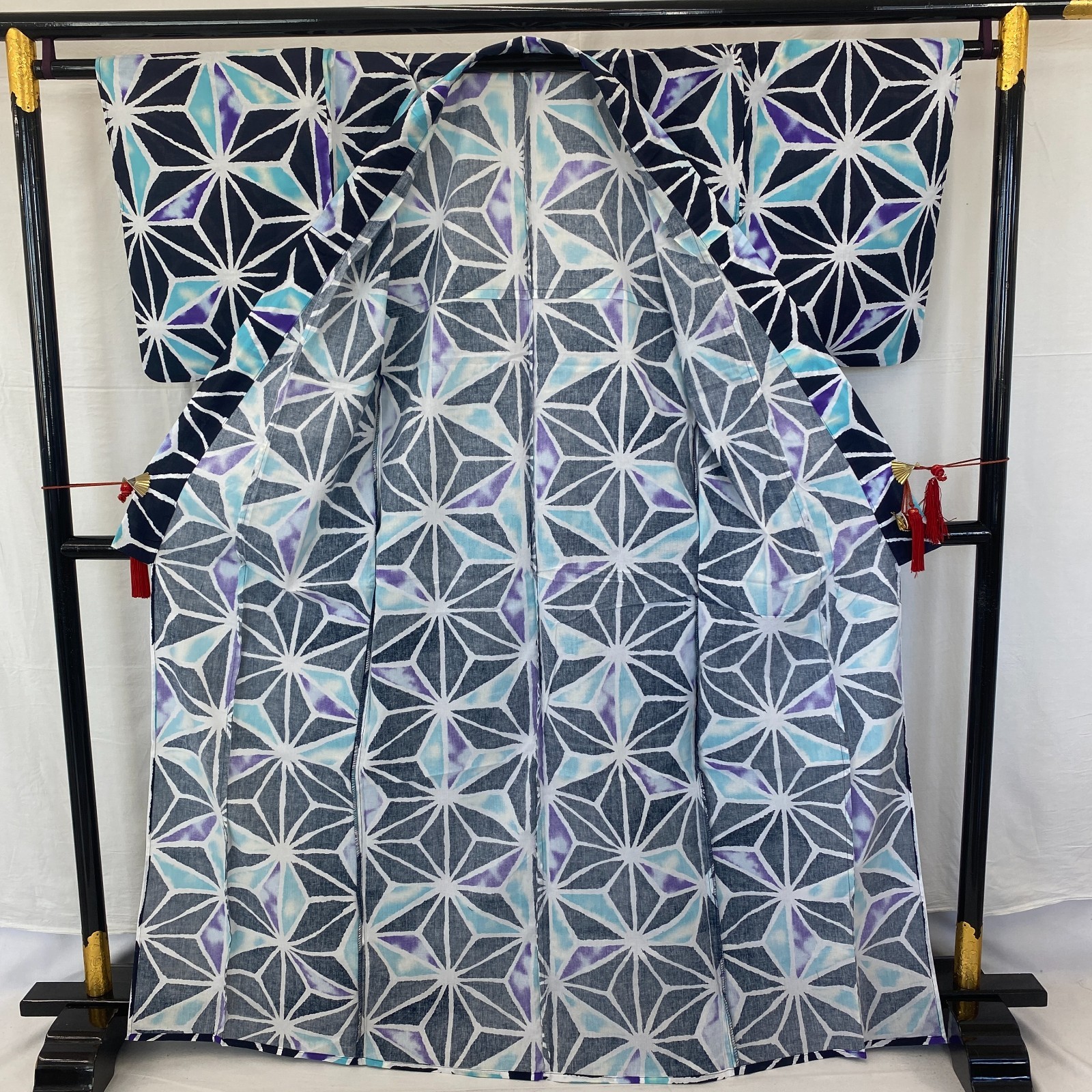 как выглядит Japanese Vintage Kimono Yukata Navy No Lining Traditional Authentic Length 64in фото