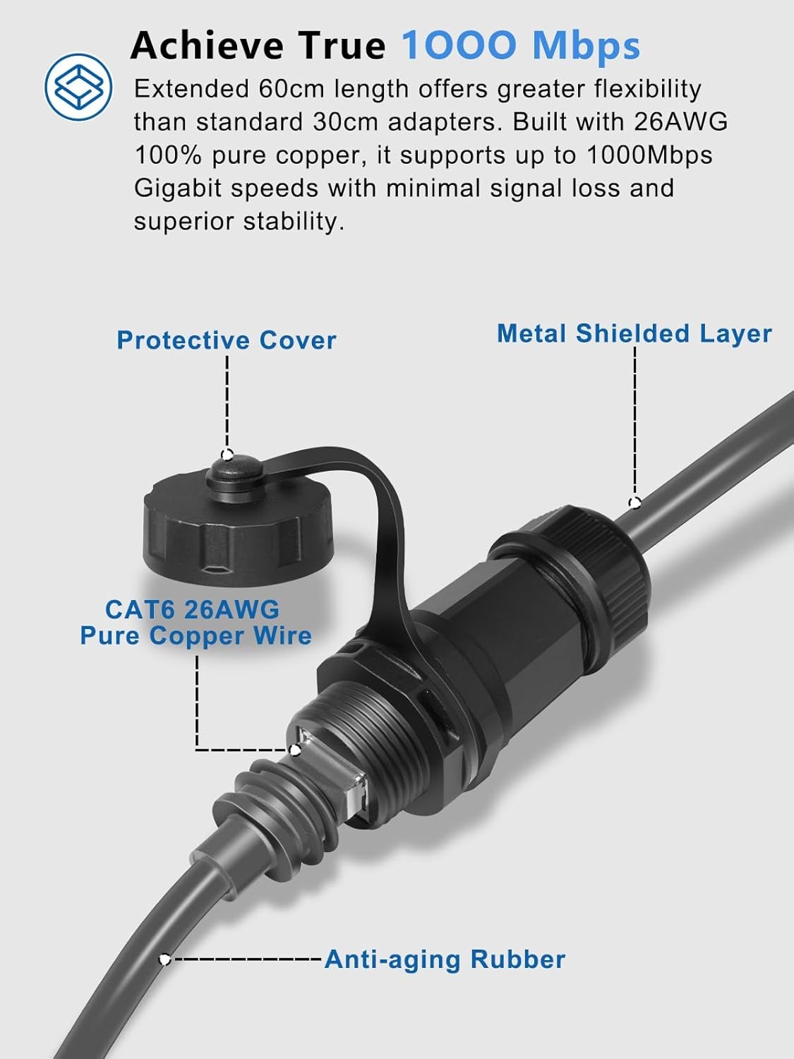 2-Foot Ethernet Adapter for Starlink Gen 3/Mini, Standard to RJ45 Coupler
