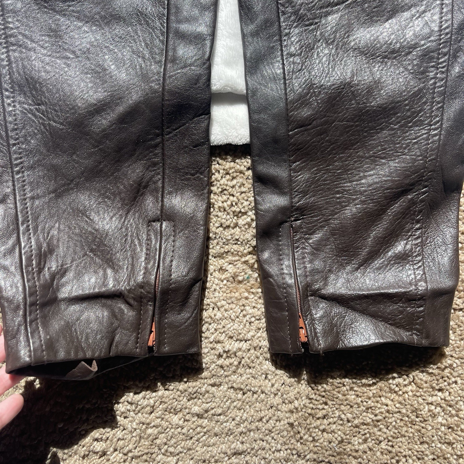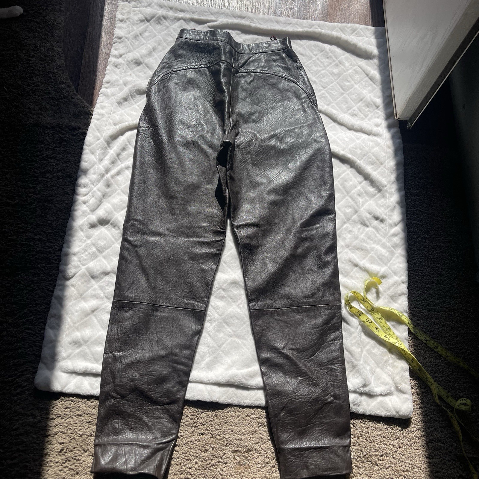 как выглядит Vintage women s Brown chocolate 100 Leather pants zippers buttons biker size 4 фото
