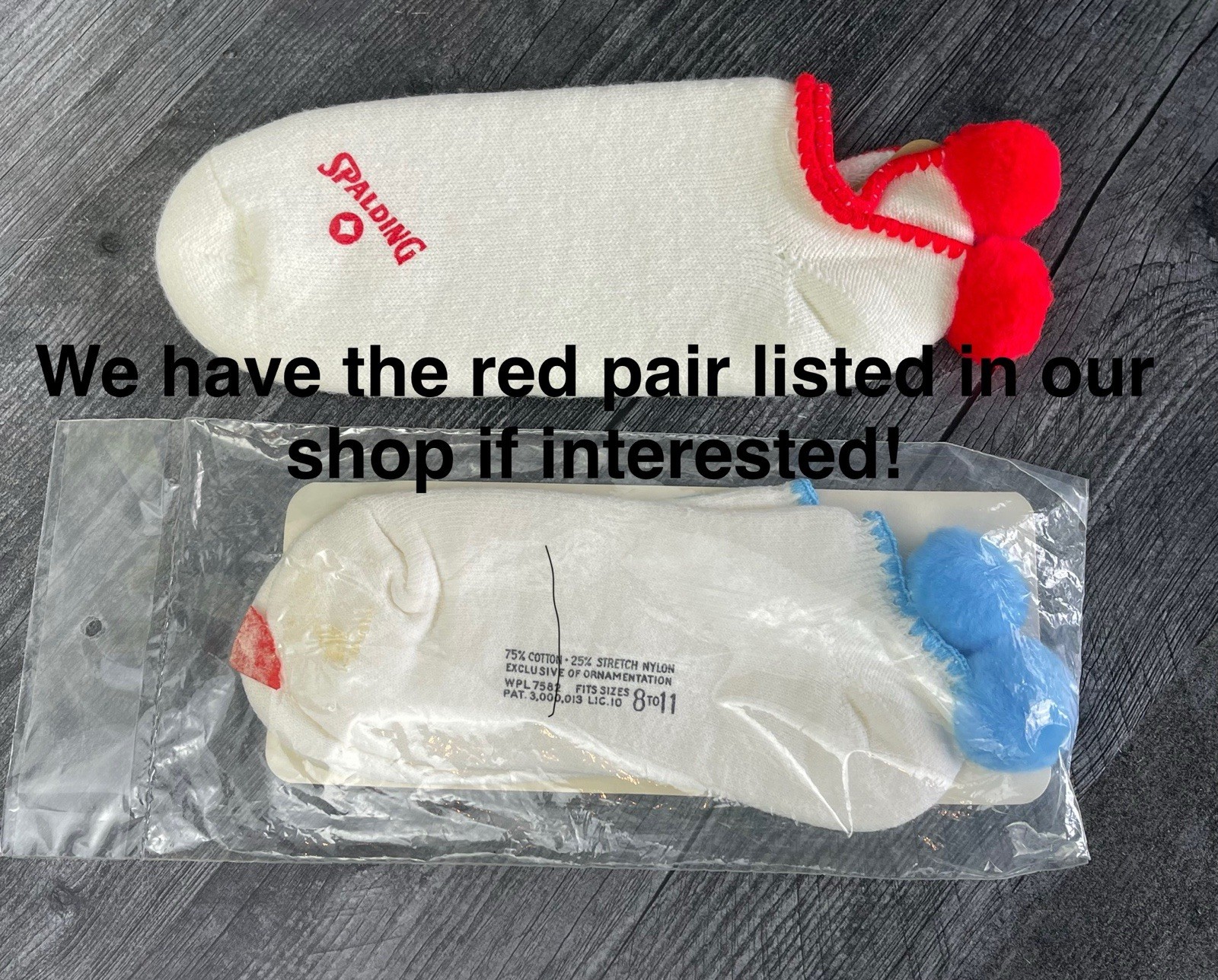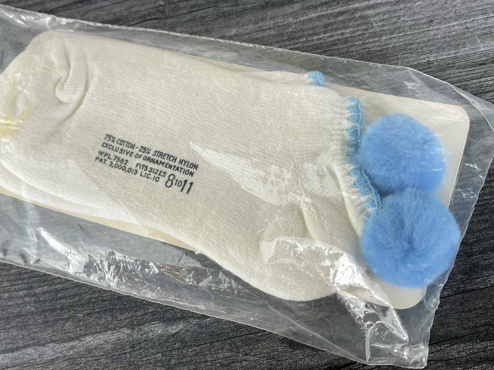 как выглядит Vintage NOS Blue Pom Pom Peds Ankle Socks Fits 8-11 Tennis Footies NIP фото