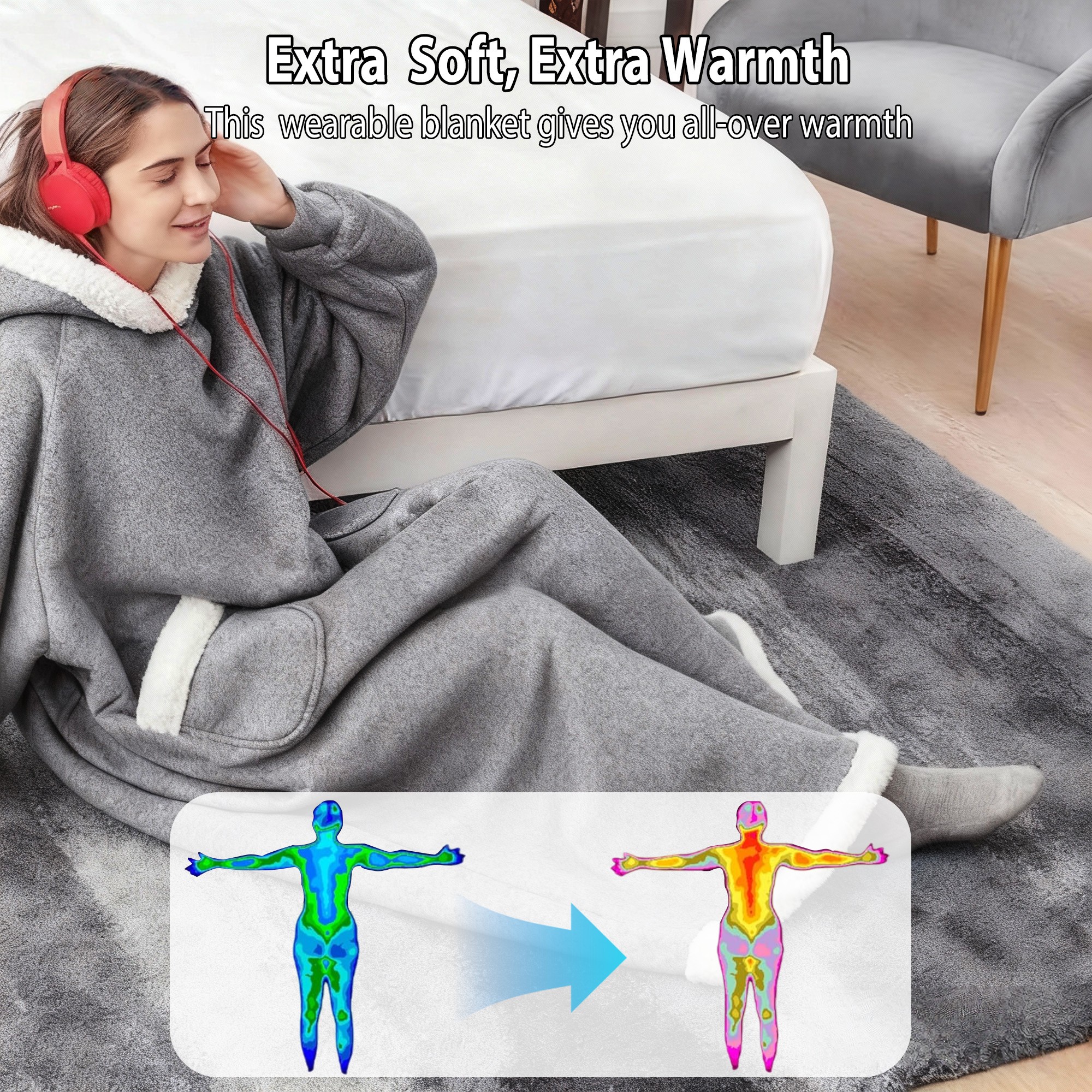 Blanket Sweatshirt Sherpa Lining Plush Comfy Fleece Oversized Hoodie with Pocket