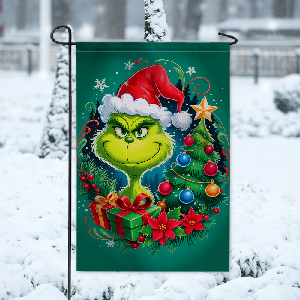 как выглядит Funny Green Santa Christmas Tree Garden Flag Outdoor Holiday Decoration фото