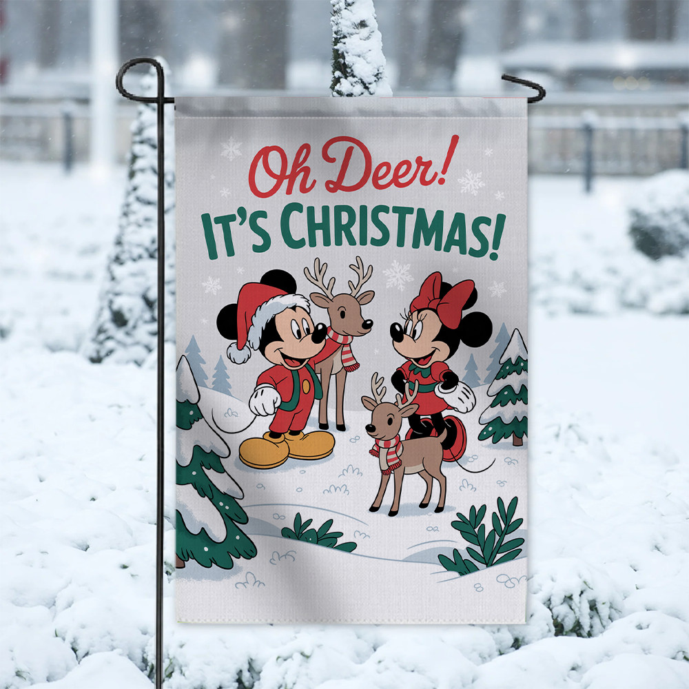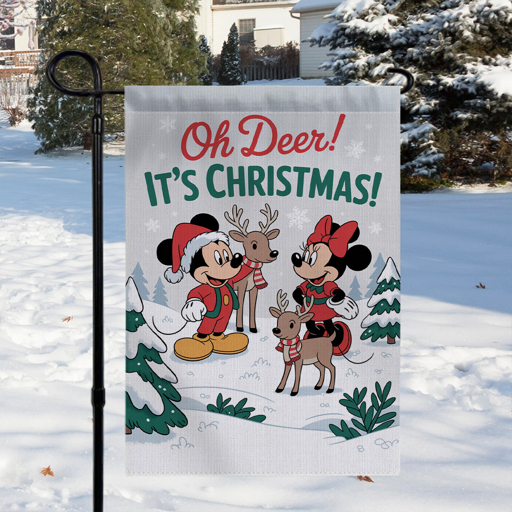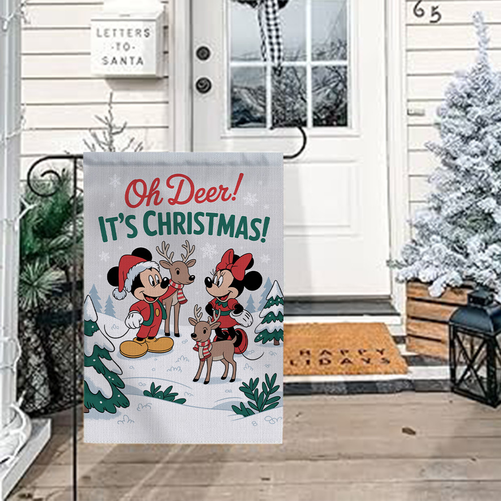 Winter Cartoon Family Flag Funny Reindeer Holiday Outdoor Decoration