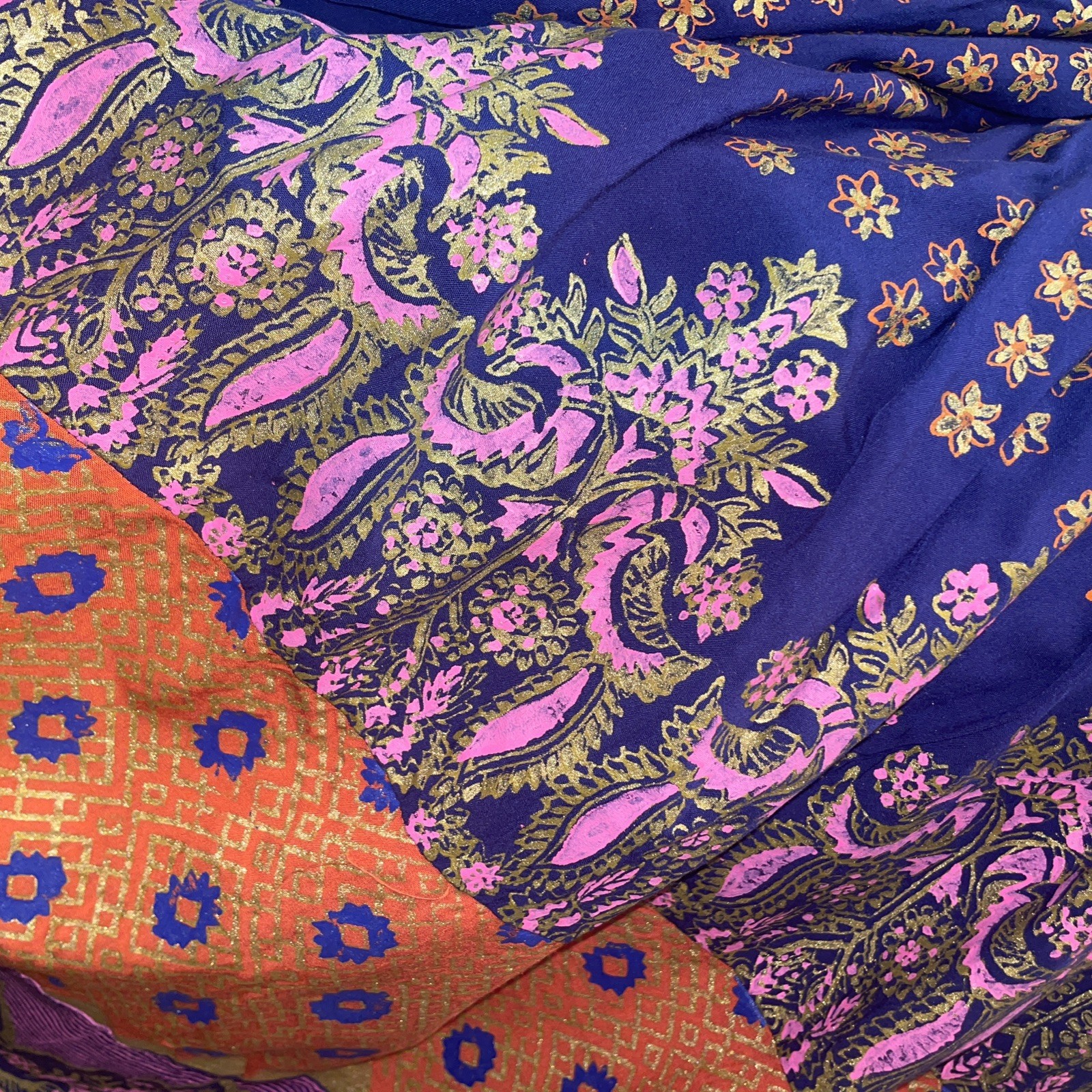 как выглядит VTG 60s 70s Hippie Colorful Gold Paisley Long Maxi Skirt 24-32 elastic waist фото