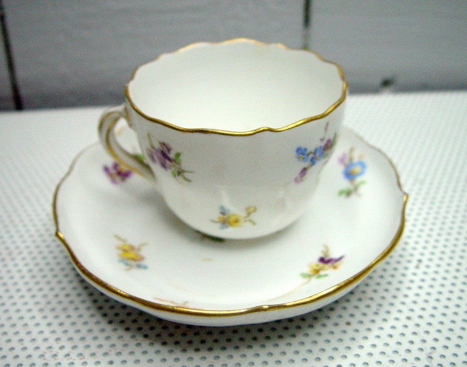 • Meissen Scattered Flowers Cup Saucer Double Swords