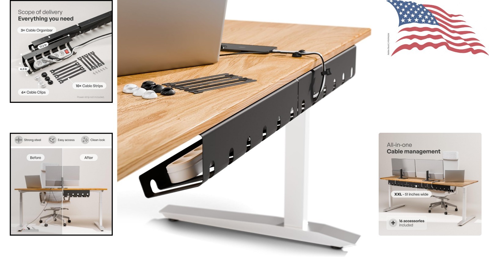 Durable Under-Table Cable Management Solution - Set of 3 with Reusable Ties