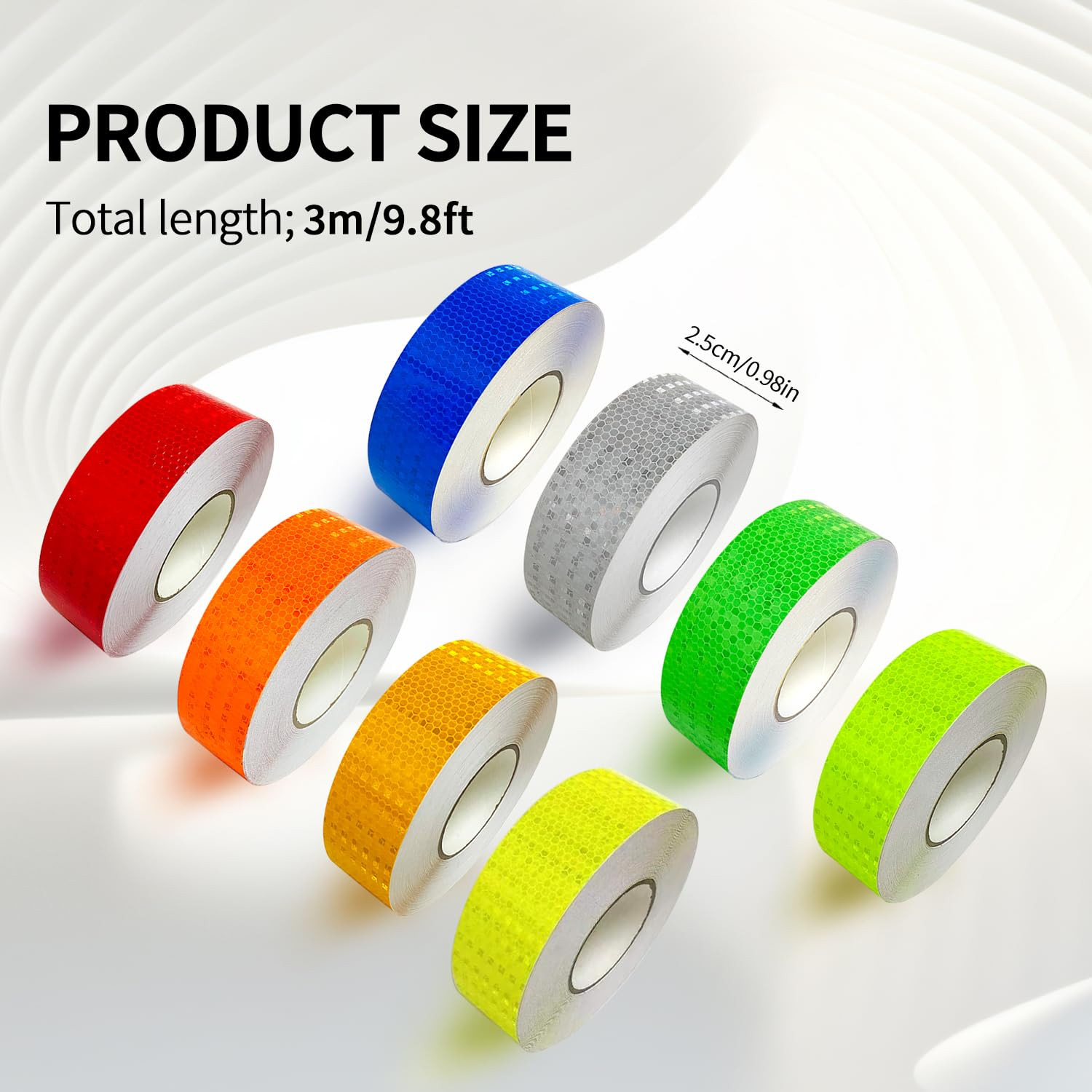 8 Rolls of 8 Colors High-Visibility Reflective Tape - Waterproof Self-Adhesive S