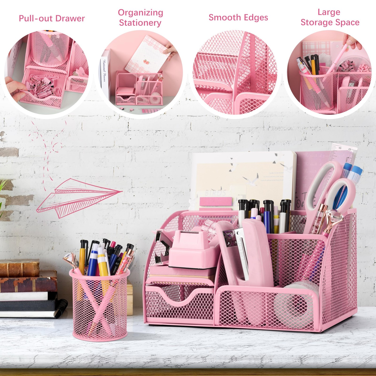 как выглядит 11 Pcs Pink Office Supplies Set Mesh Desk Organizer Accessories Kit Include S... фото