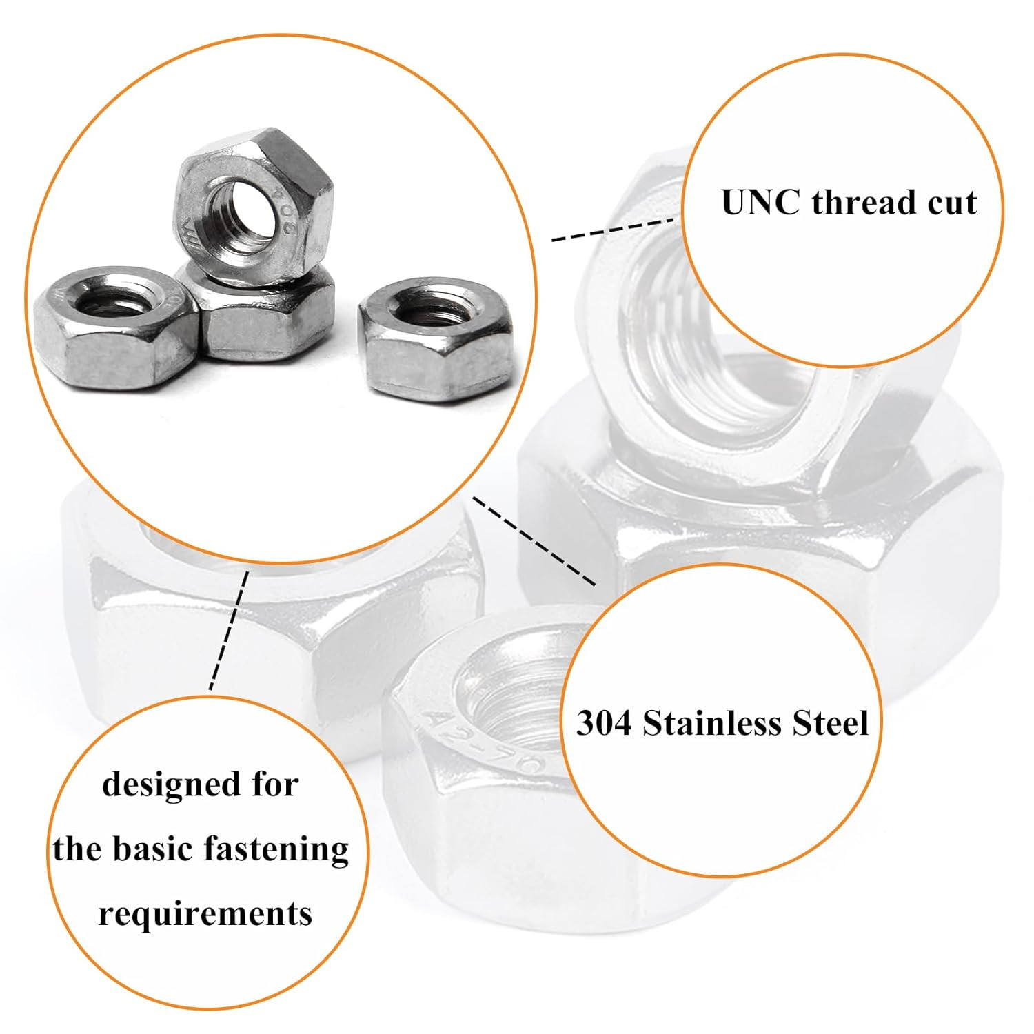180Pcs 8-32 Hex Nut, 304 Stainless Steel, Hex Drive, UNC Small Nuts Fasteners,