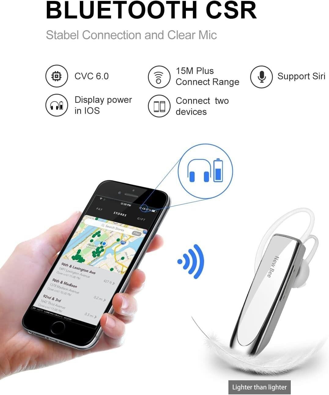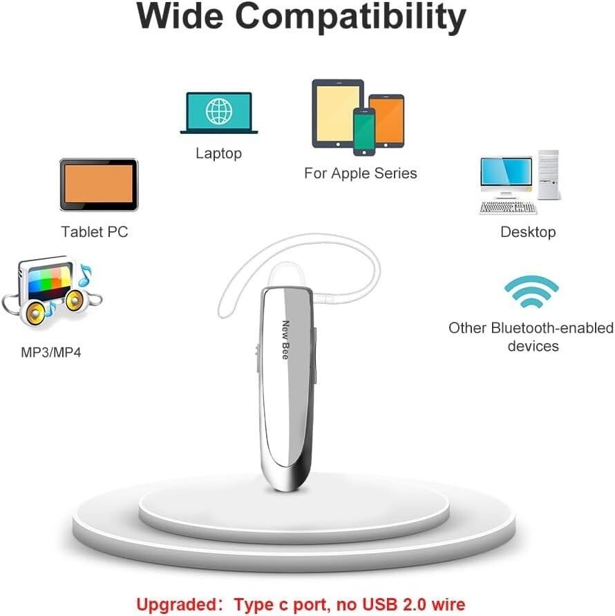 New Bee Bluetooth Wireless Handsfree Headset for iPhone Android Samsung Laptop