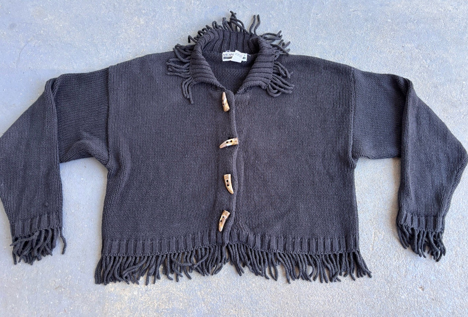 VTG Michael Seroy BOHO Fringe Trim Horn Button Sweater.medium/boxy Oversized