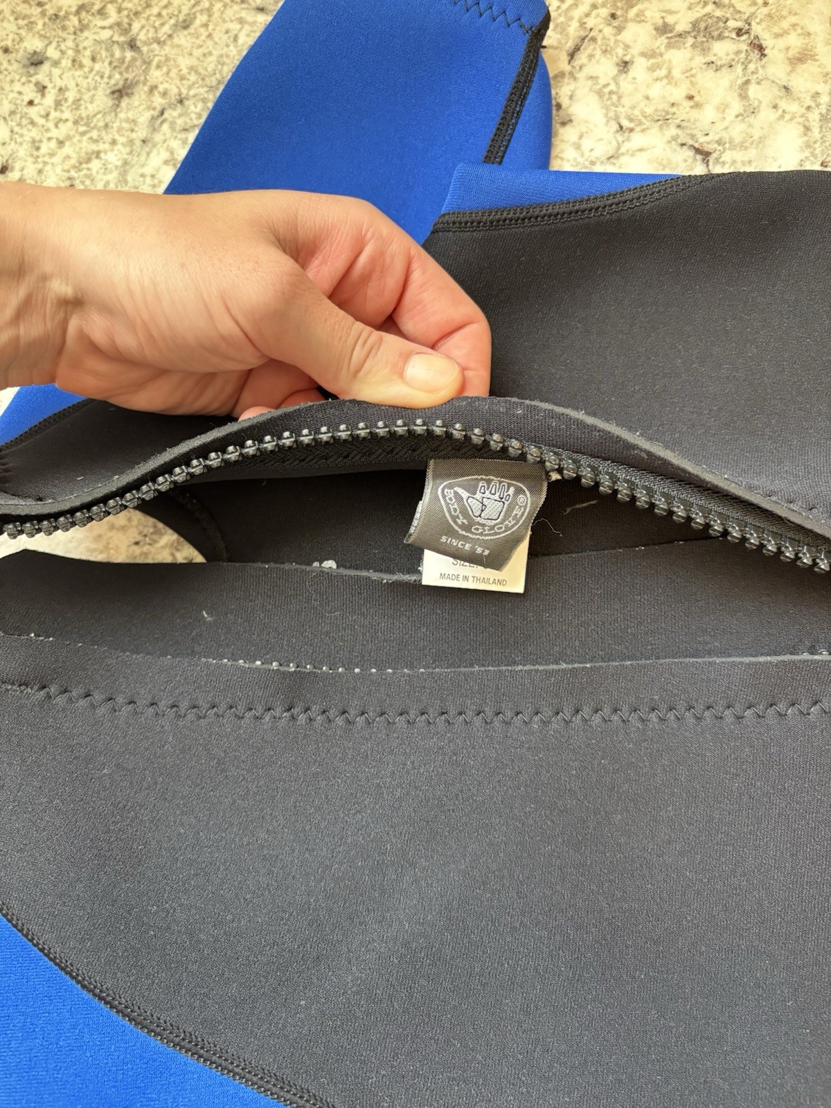 как выглядит Youth Spring Shorty Wetsuit: Black with Blue: Size C1: Body Glove Brand фото