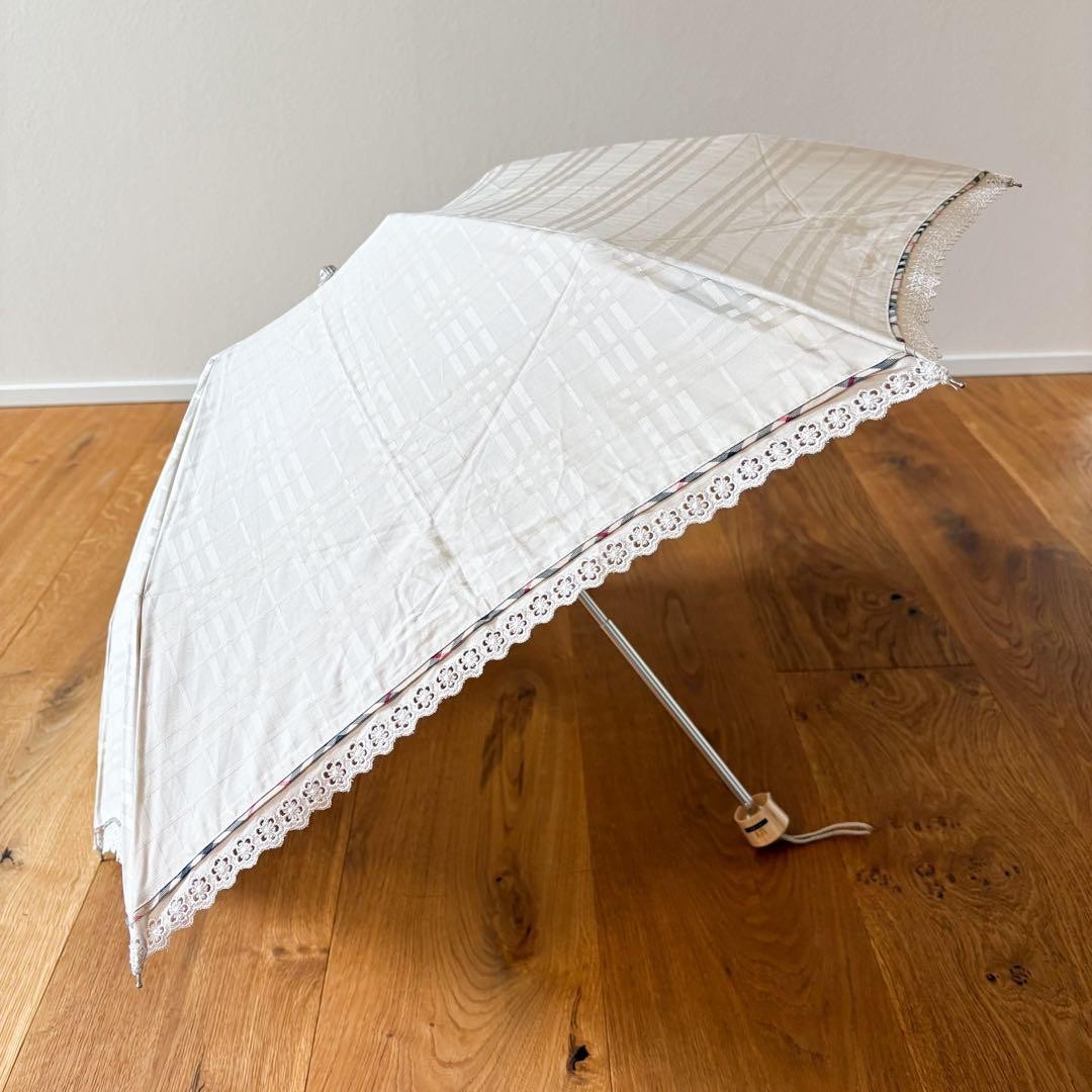 BURBERRY Sun Rain Folding Umbrella Beige Ivory Nova Check Carbon Fiber Ribs
