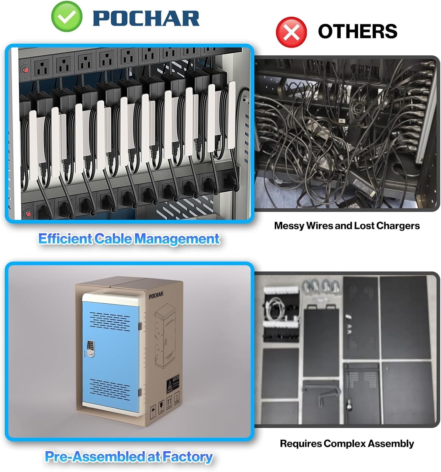 Fully Assembled 30 Device Laptop Charging Cart for Chromebooks, iPads, Tablets