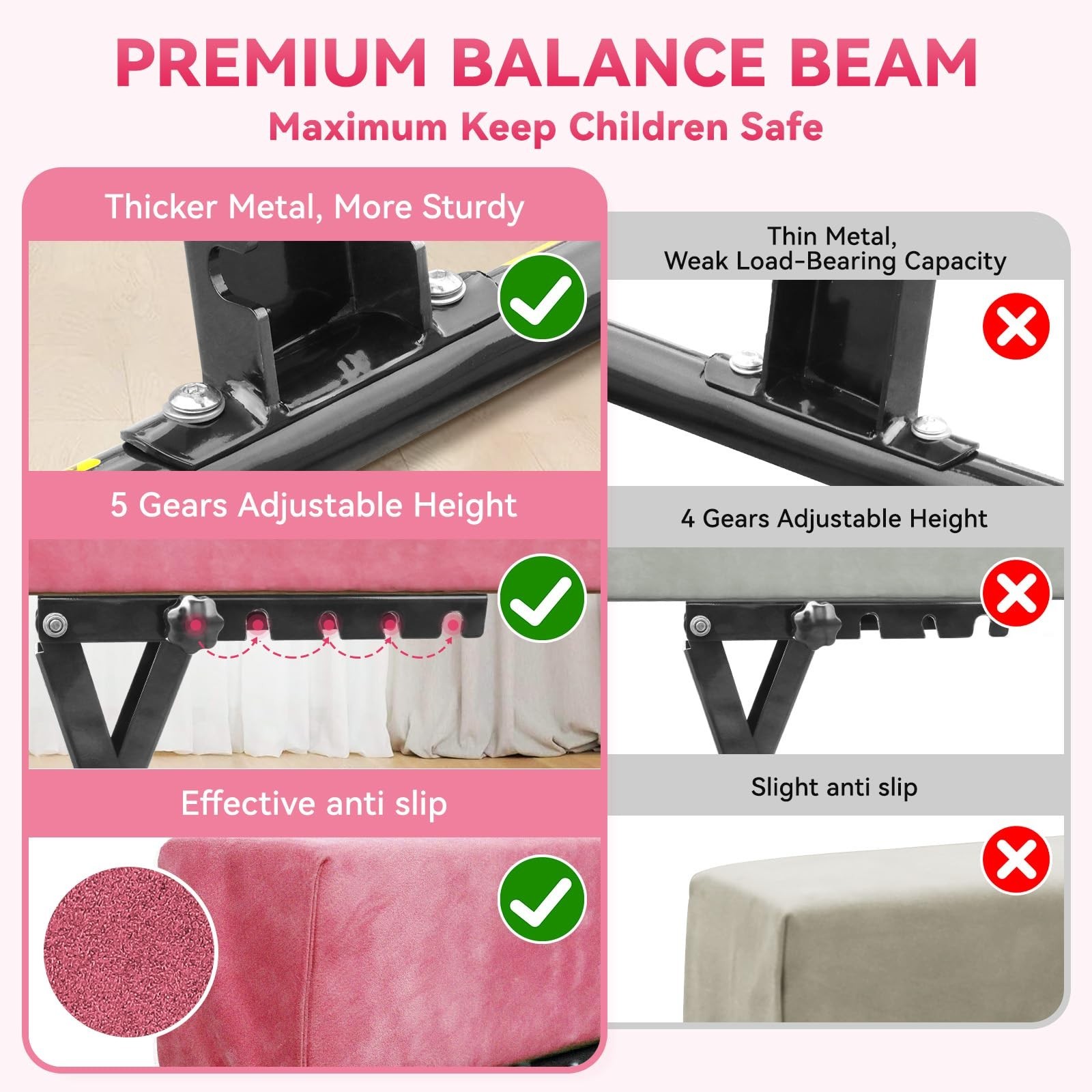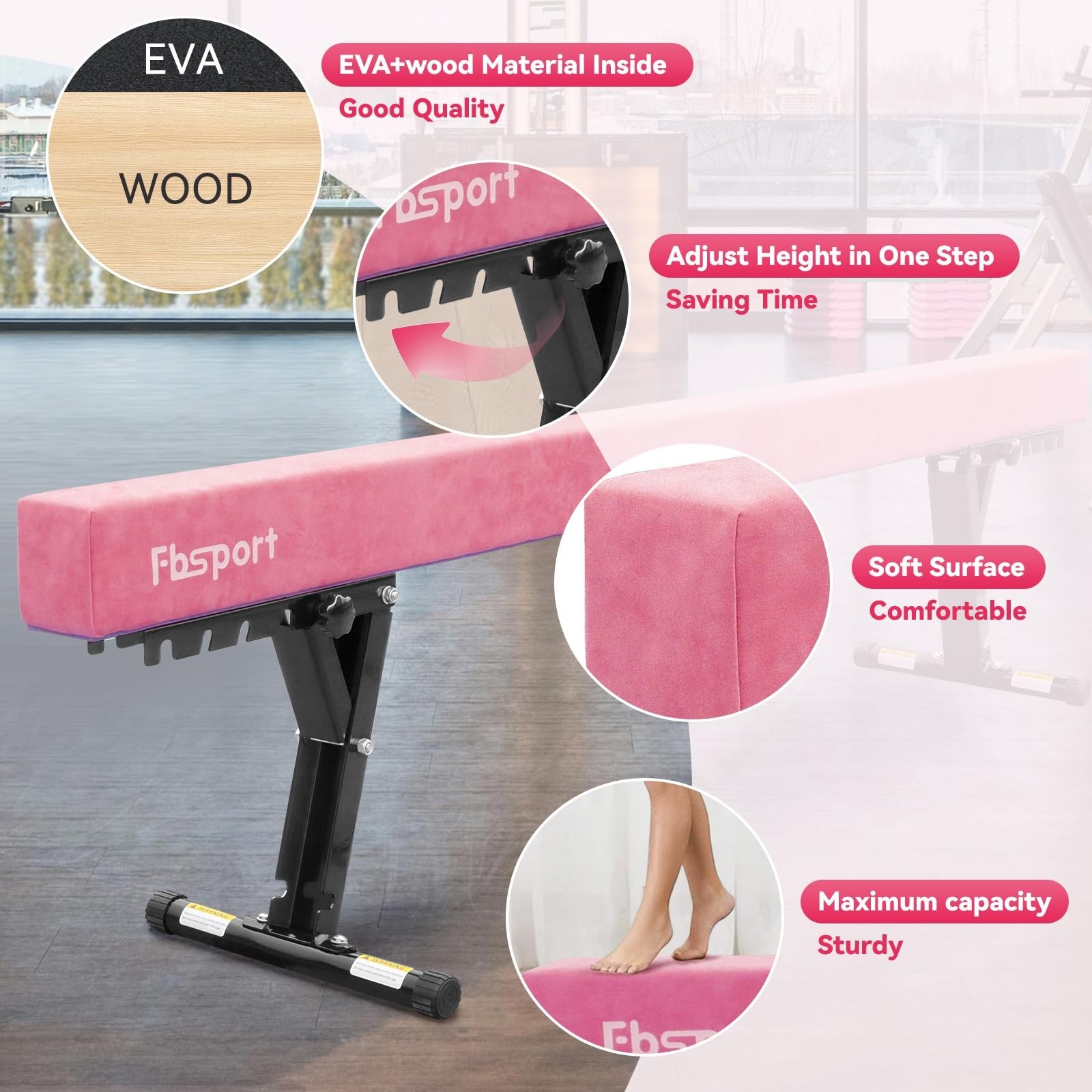 FBSPORT 8ft Adjustable Balance Beam: Beam Gymnastics Equipment for Kids/Adults