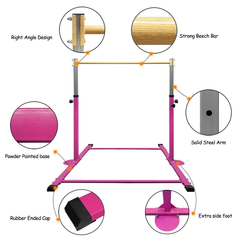 Gymnastic Kip Bar Horizontal Bar for Kids Girls Junior 3 to 5 Adjustable Height