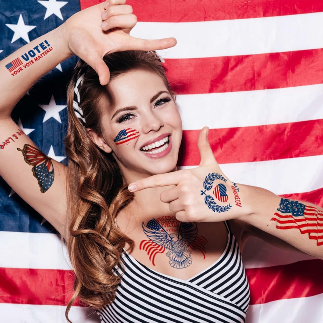 4th of July Temporary Tattoos Full Half Arm - American Flag Tattoos for Kid...