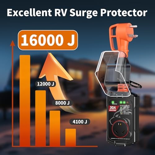Vehiker 16000 Joules-RV Surge Protector 30 Amp, RV Power Surge 30A Orange