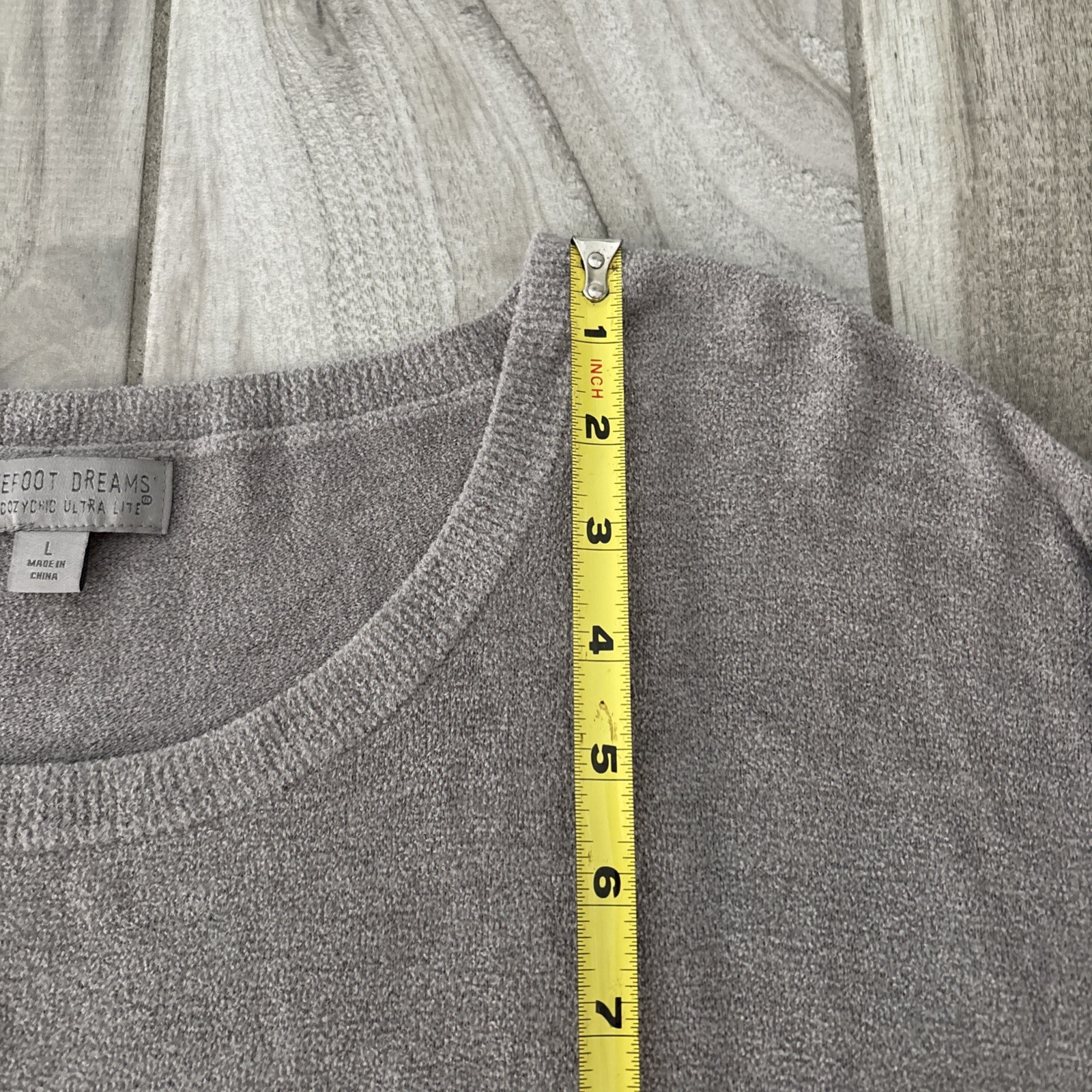 как выглядит Barefoot Dreams Womens Pullover Sweater Cozychic Lite Size L Gray Scoop Neck фото