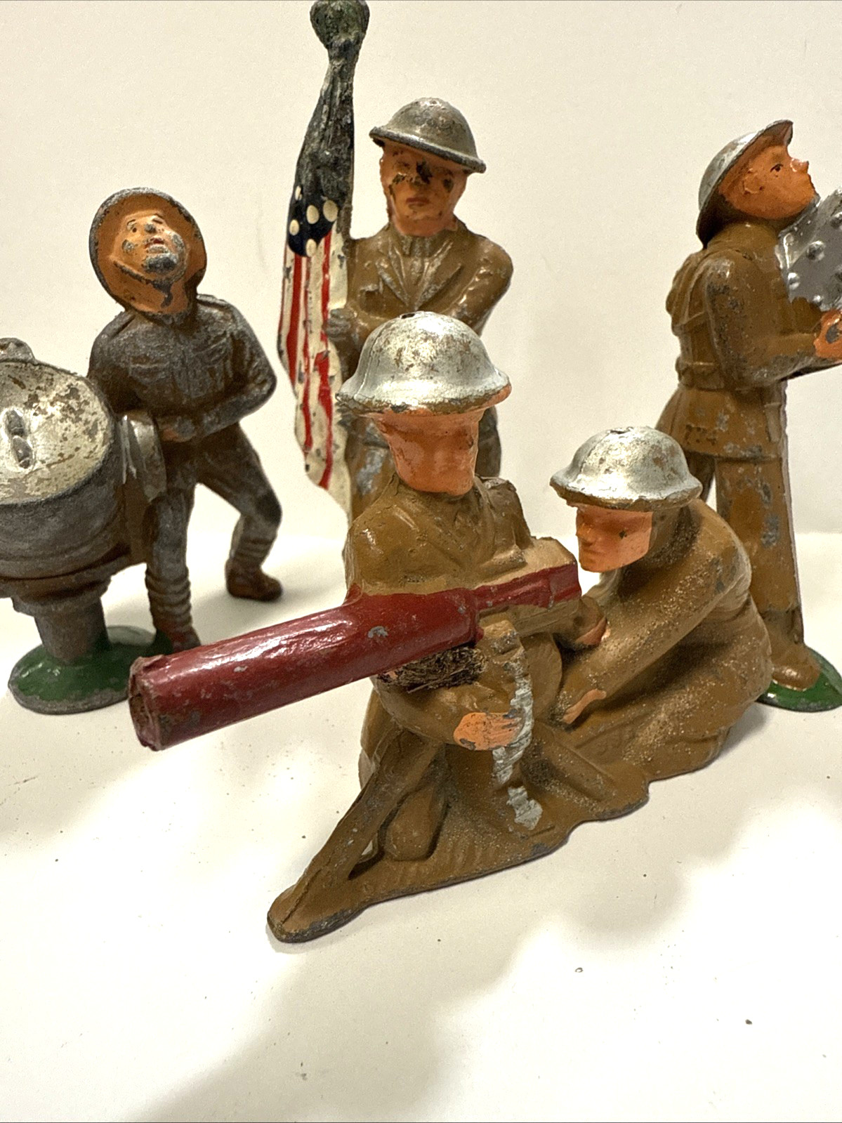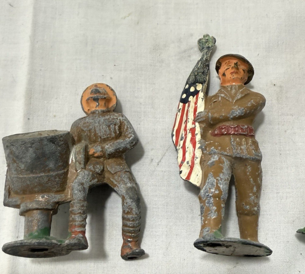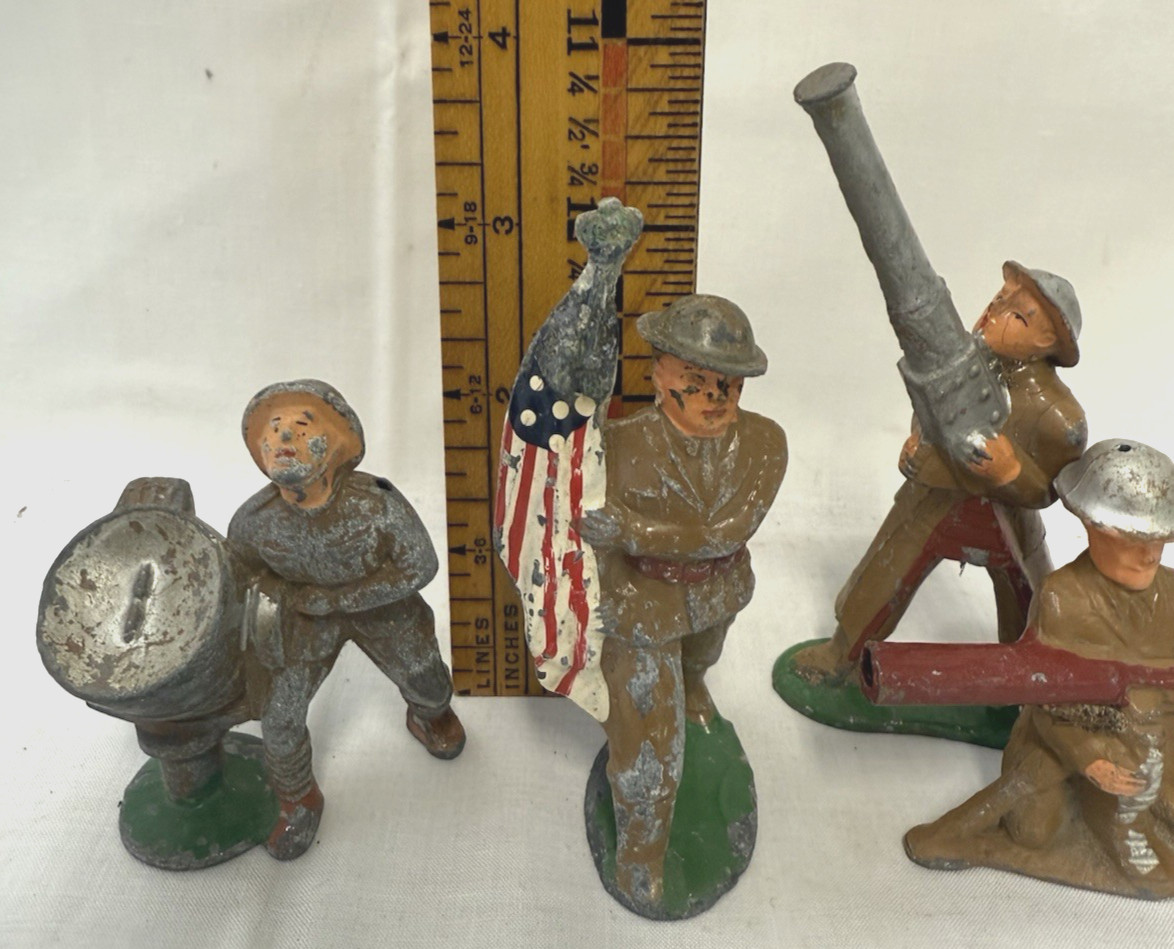 Lot 4 Manoil Barclay Soldiers Metal Figures World War 1 WWI Flag Machine Gunner
