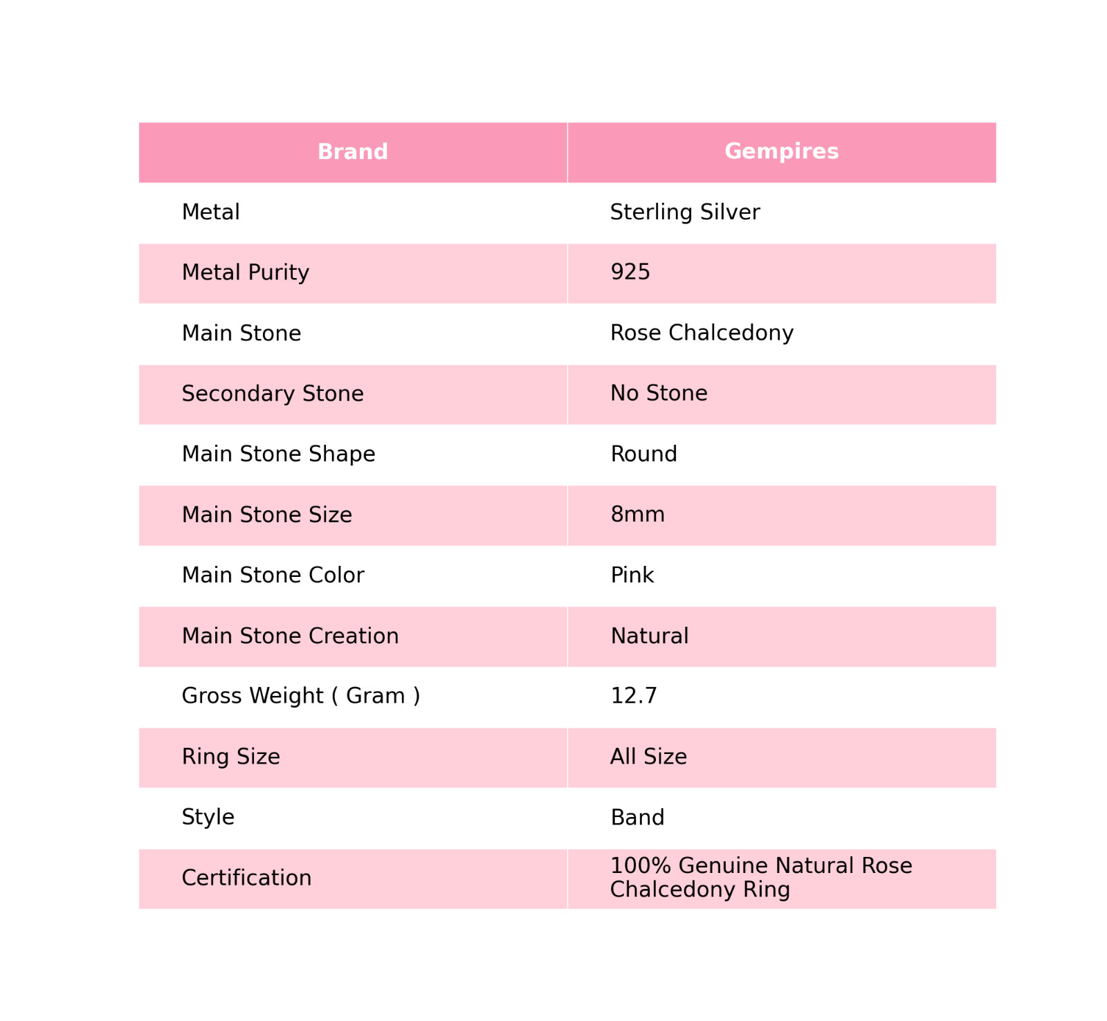 Certification: 100% Genuine Natural Rose Chalcedony Ring