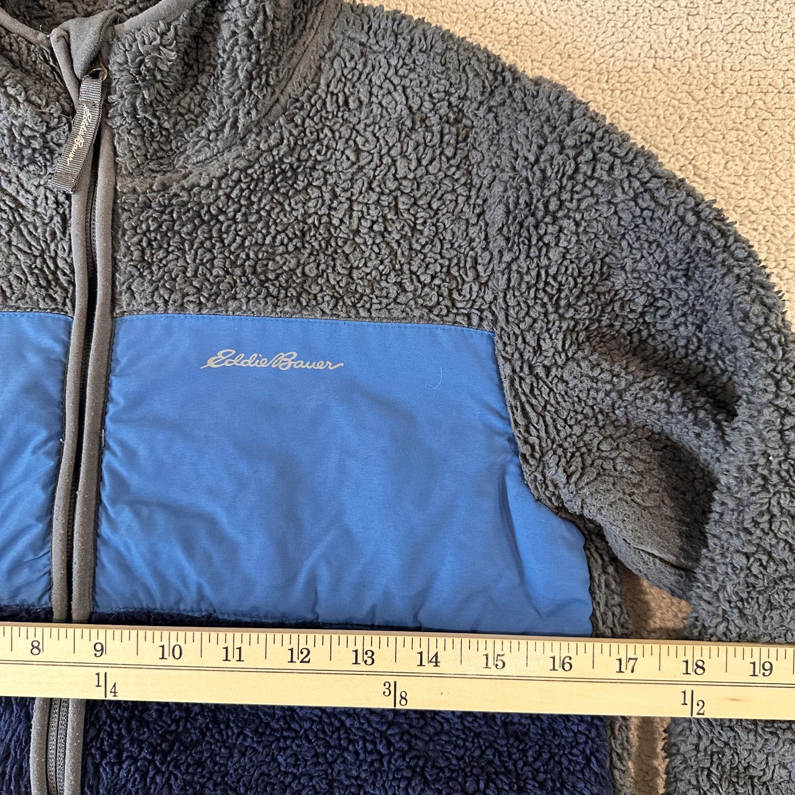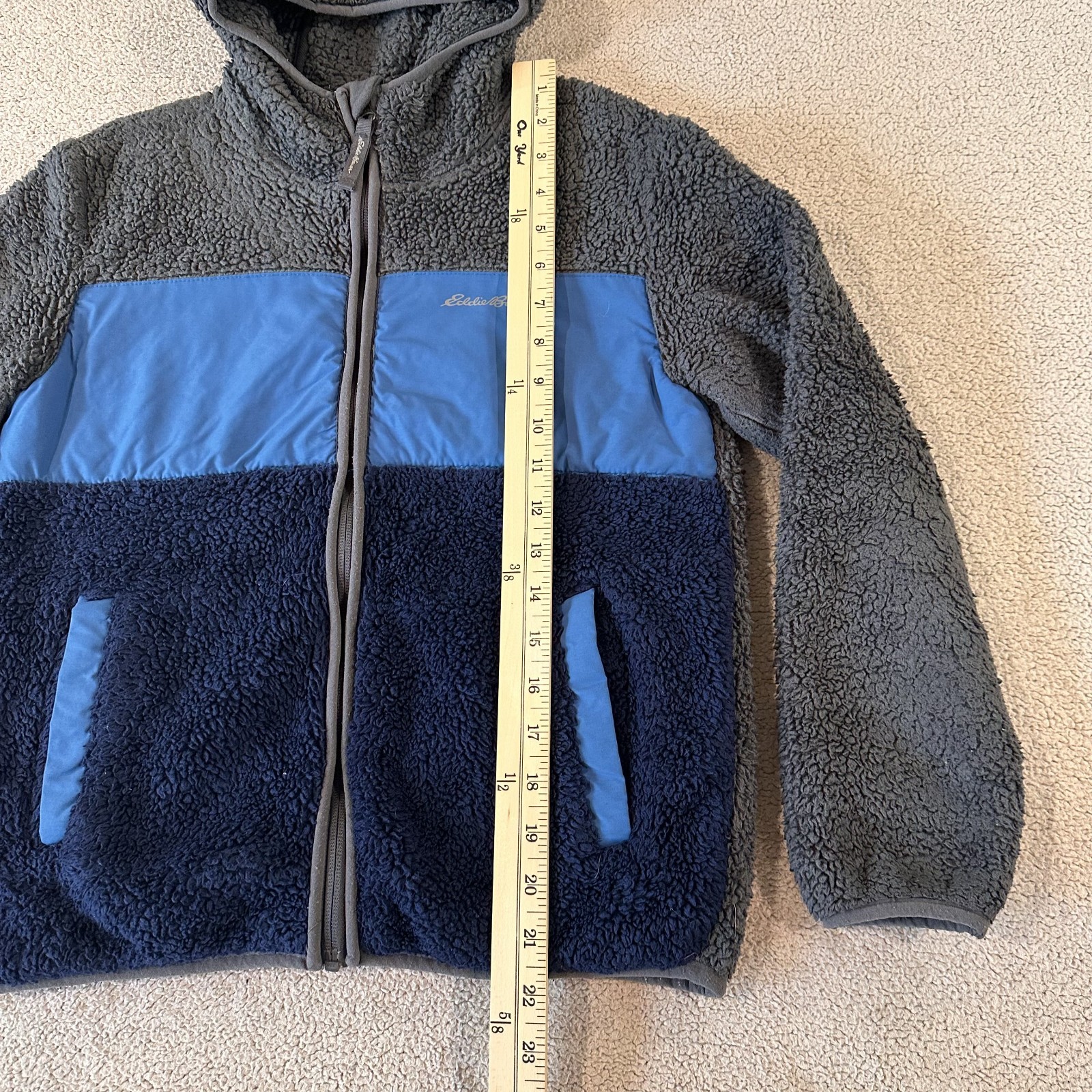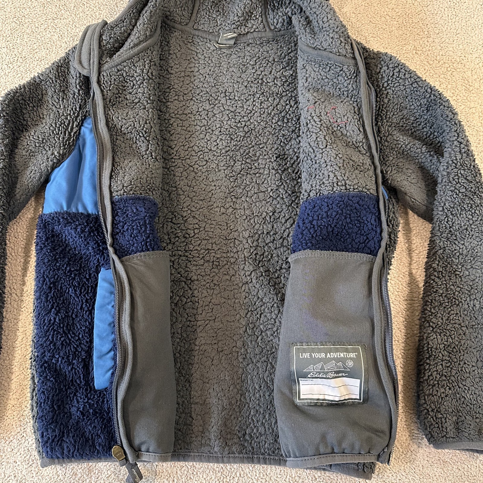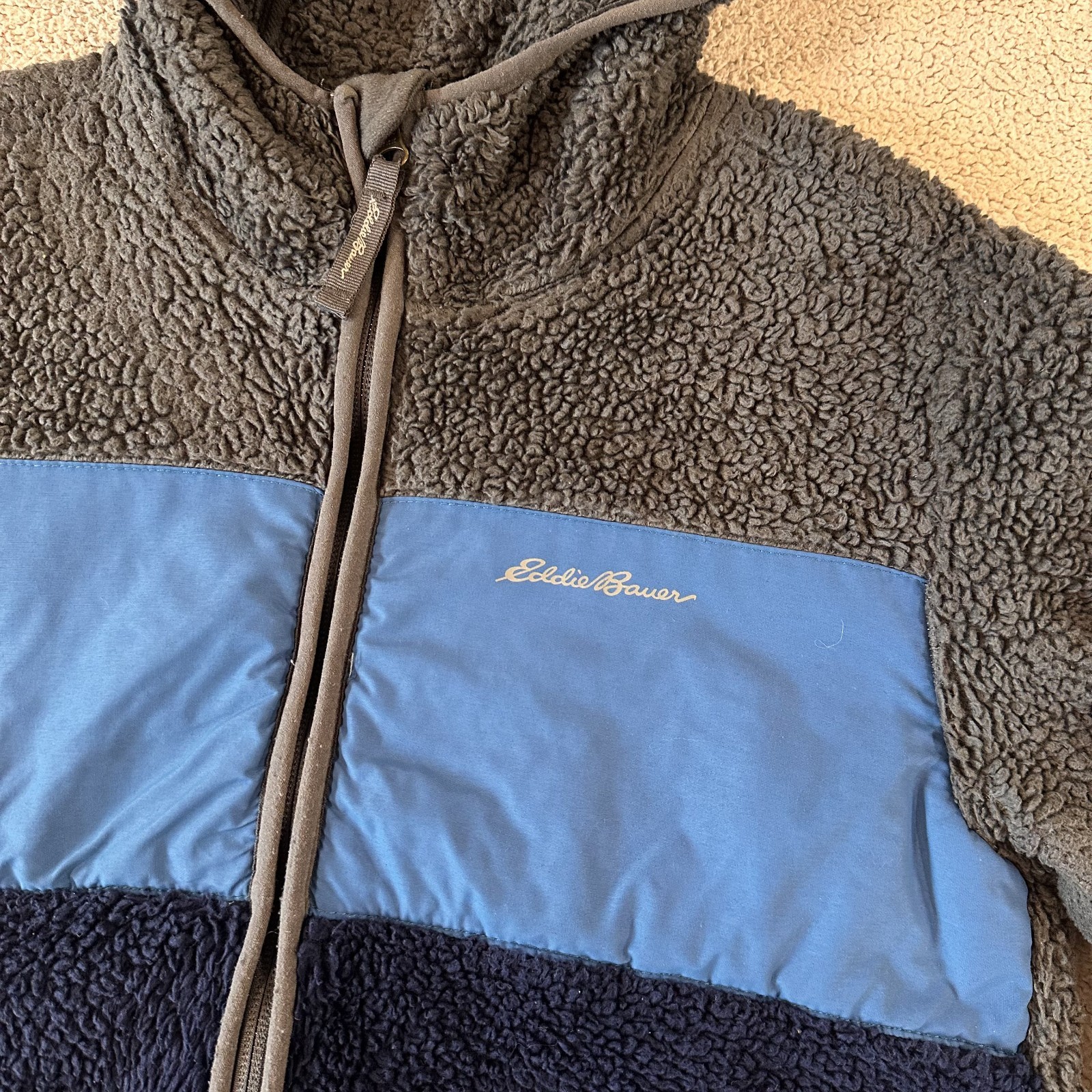 как выглядит Eddie Bauer Hooded Fleece Jacket Kids Size Medium 10/12 Grey/Blue With Pockets фото