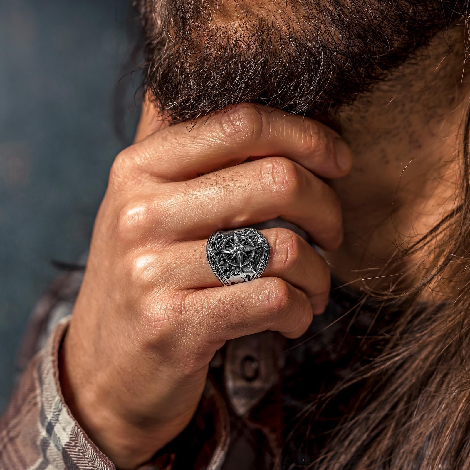 как выглядит Compass and World Map Silver Ring, Mens Handmade Sailor Ring 12 фото