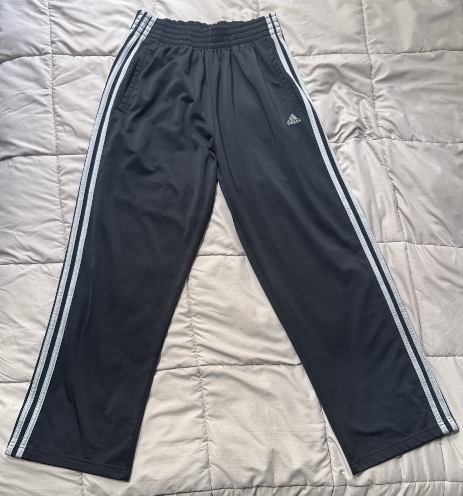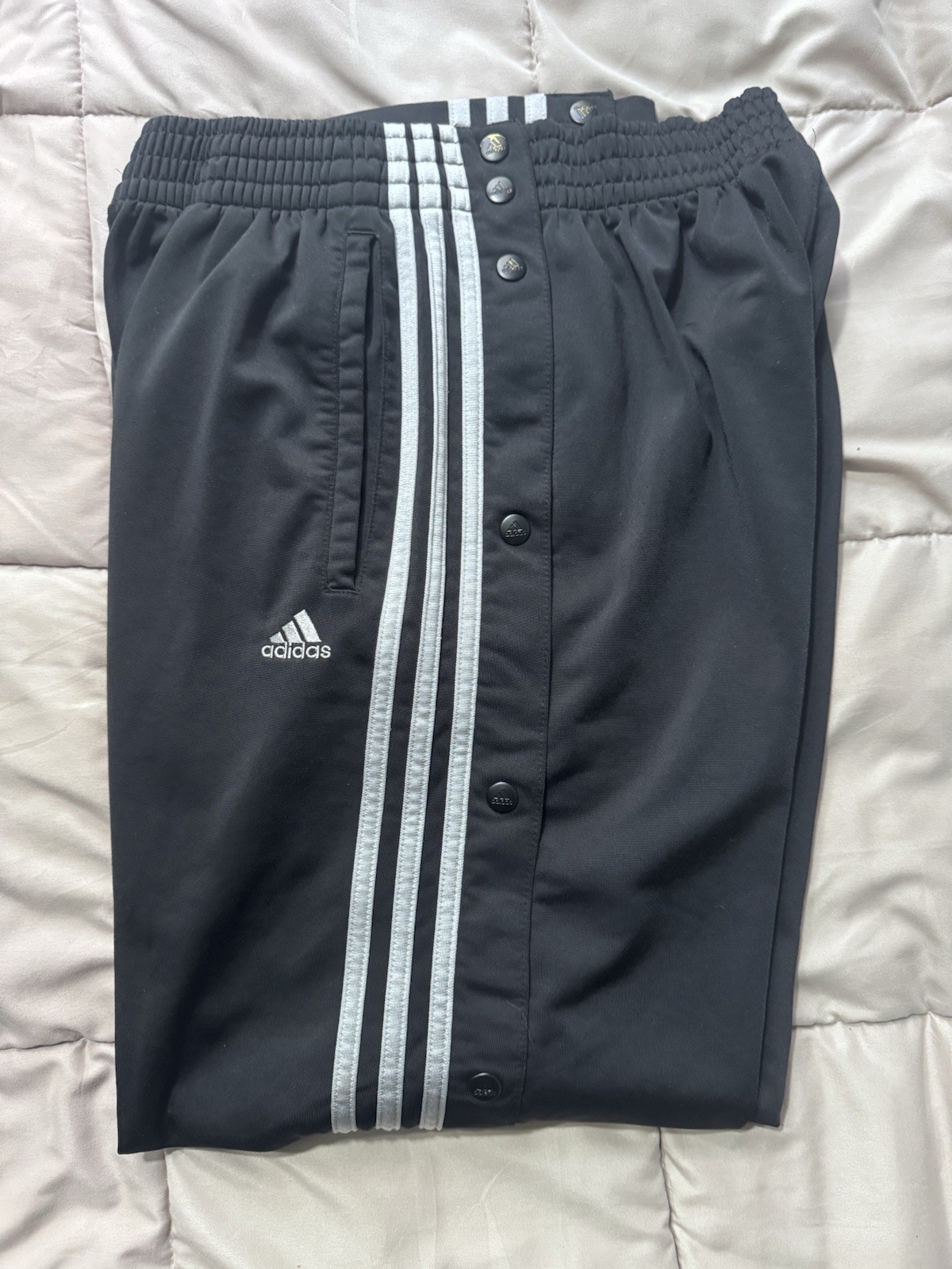 Men s Vintage Adidas 3 Stripe Tear Away Snap Track Soccer Pants Black Gray Sz S