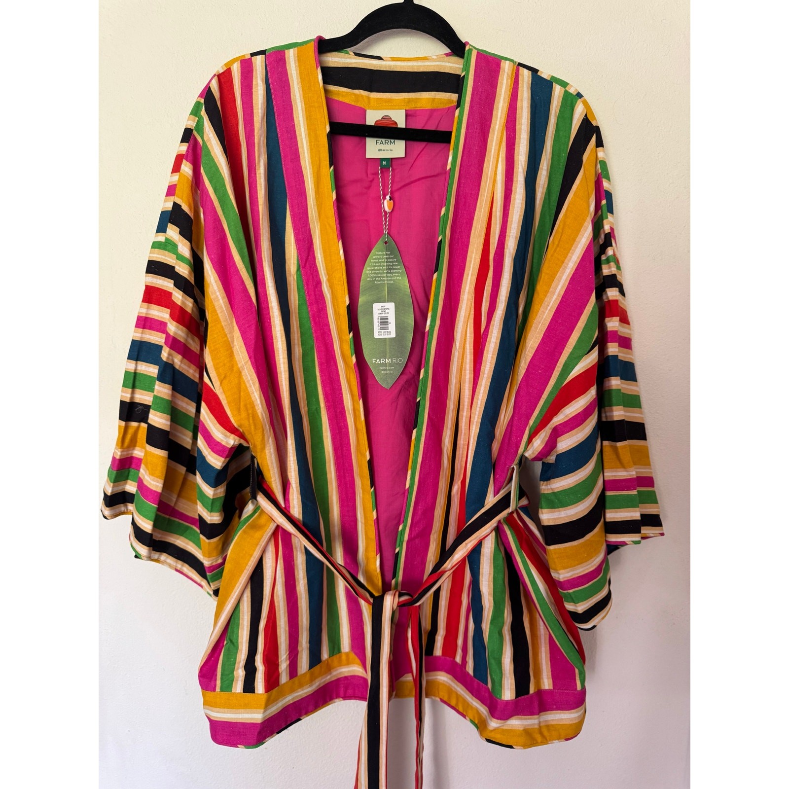 FARM RIO Rainbow Stripes Kimono NWT size M wide sleeve with belt closure