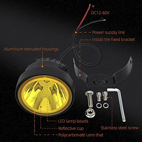 LED Round Yellow Driving Fog Lights 2Pcs 4 Inch Super Bright Yellow Spot Beam
