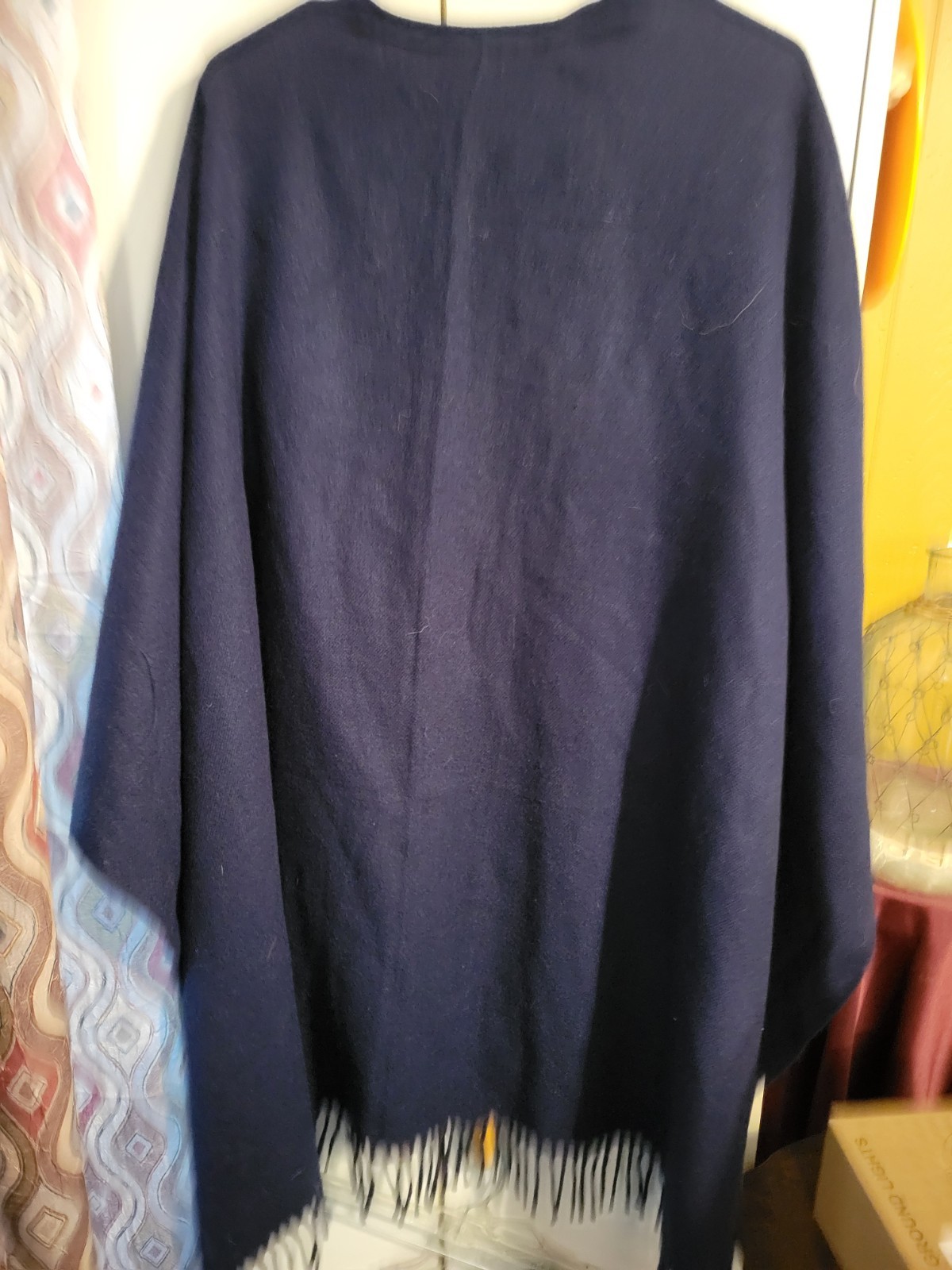 как выглядит Womens Dark Blue Long Fringed Shawl фото