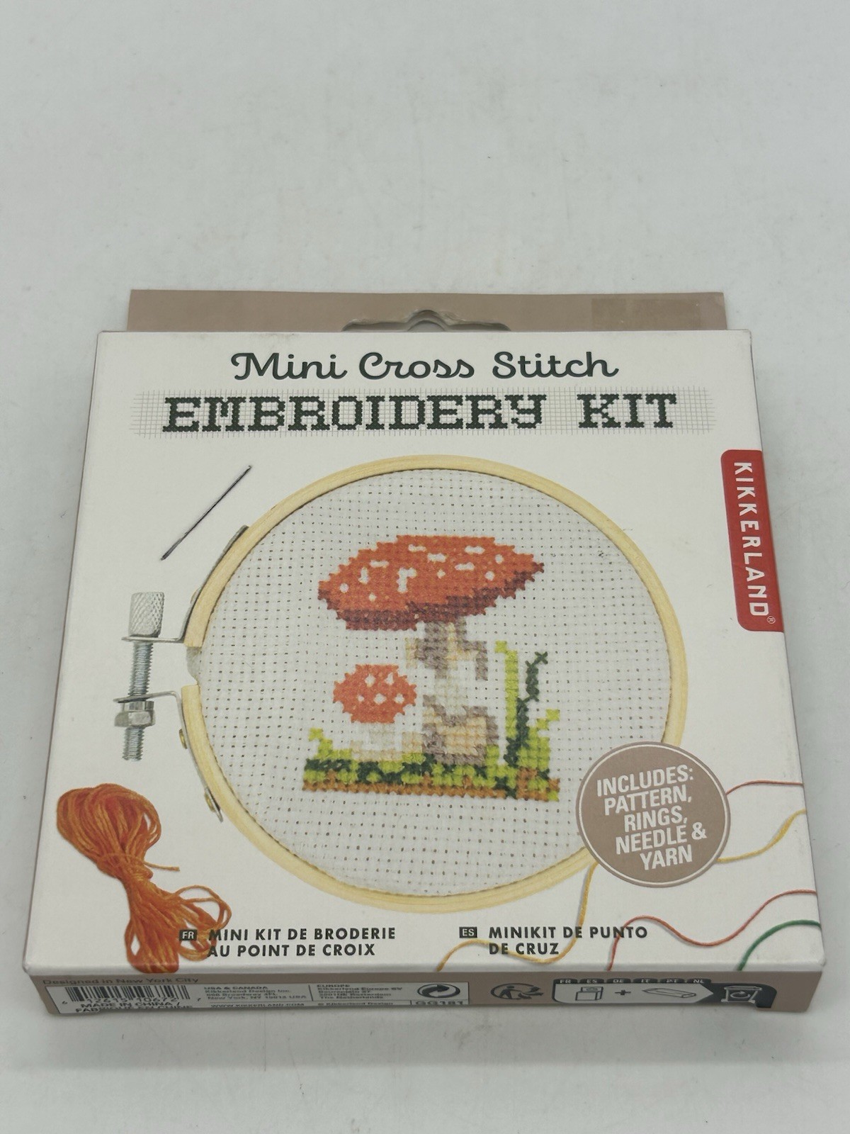 Kikkerland Mini Mushroom Counted Cross Stitch Embroidery Kit NEW Set of 2