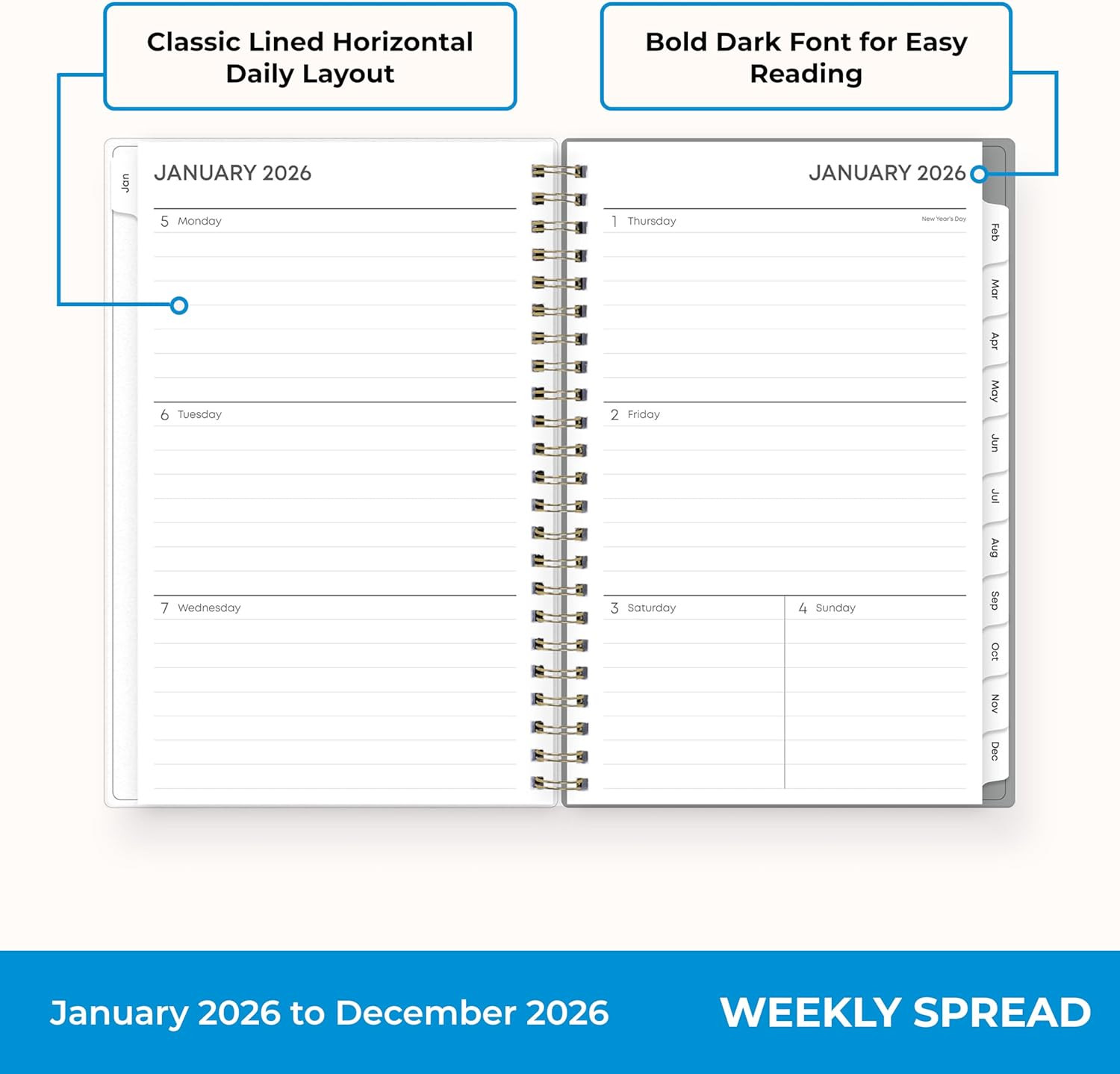 2026 Weekly and Monthly Planner Calendar, January 2026 - December 2026, 5 X 8,