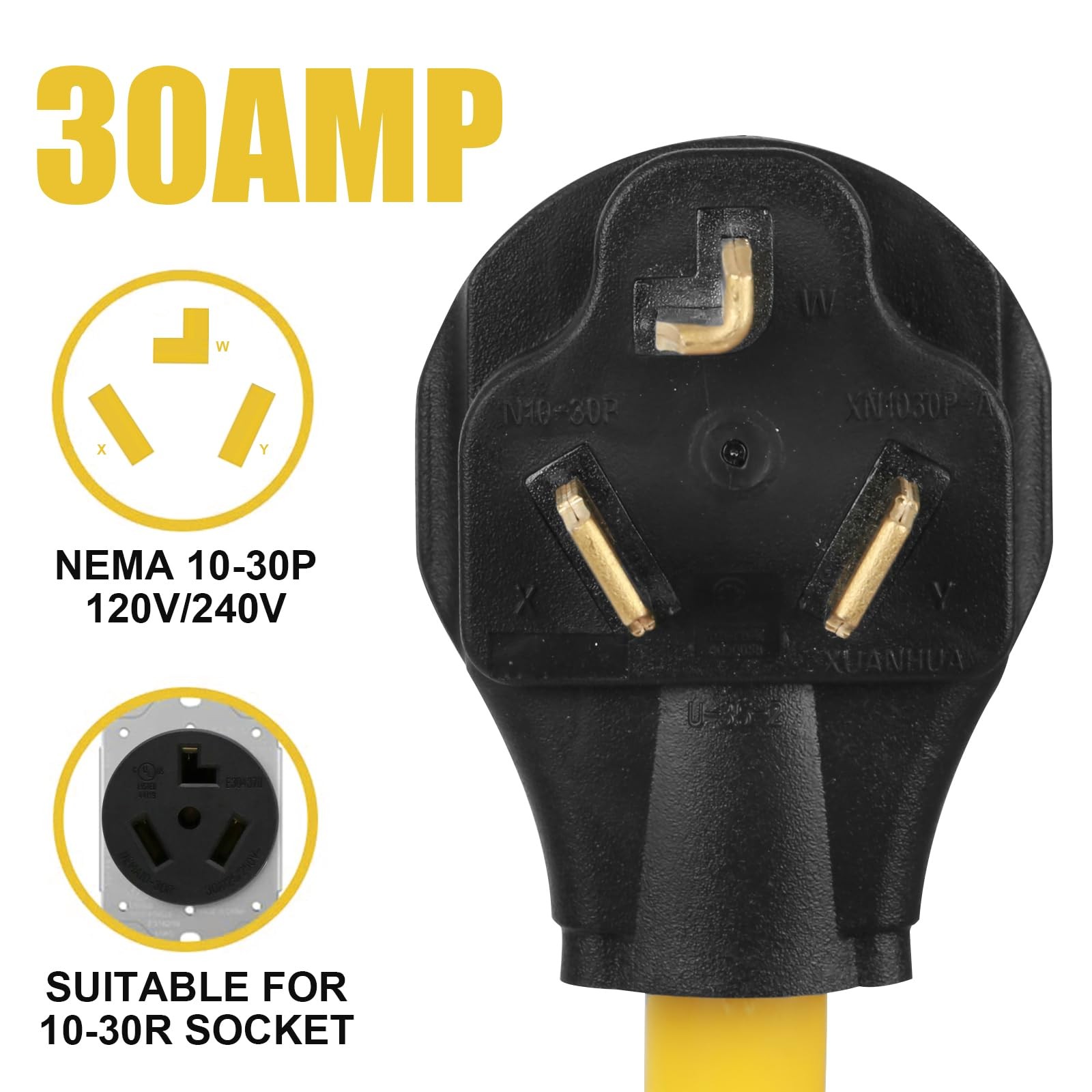 NEMA 10-30P to 10-50R Dryer Power Cord Adapter 30 Amp 3 Prong Male Plug to 3 ...