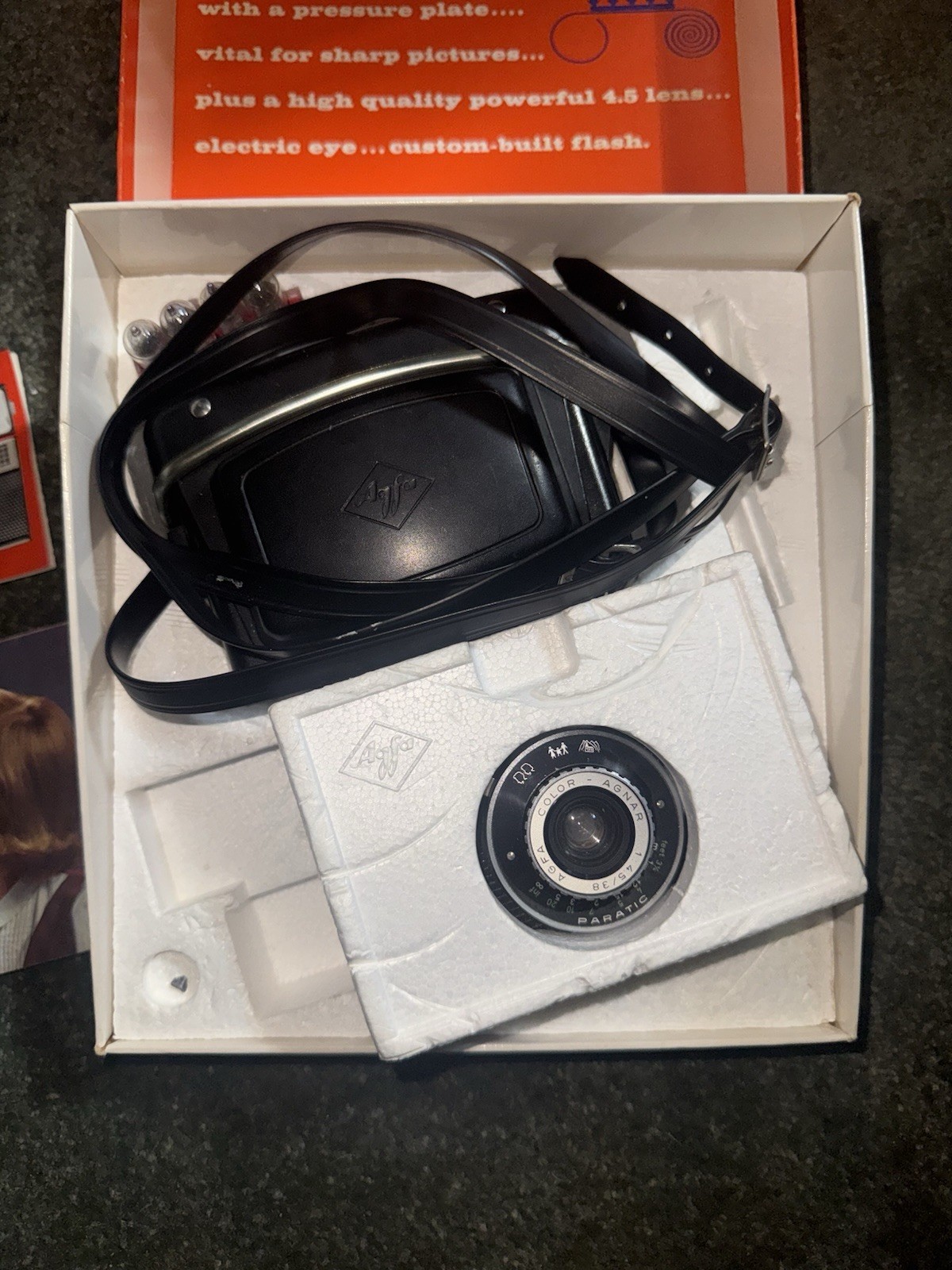 как выглядит Agfa Isomat-Rapid 35mm Camera with case, flash, instructions in original box фото