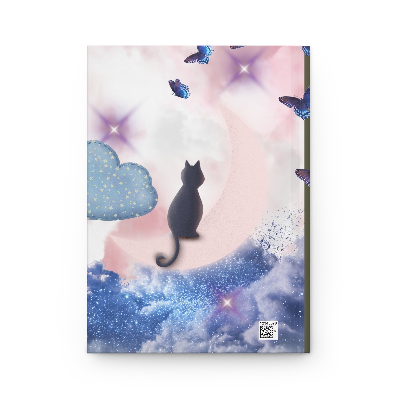Moon Cat Illustration Hardcover Journal Dreamy Clouds, Butterflies, cats