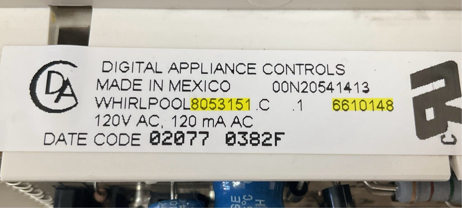 Whirlpool Oven Control Board - Part 6610148 8053151