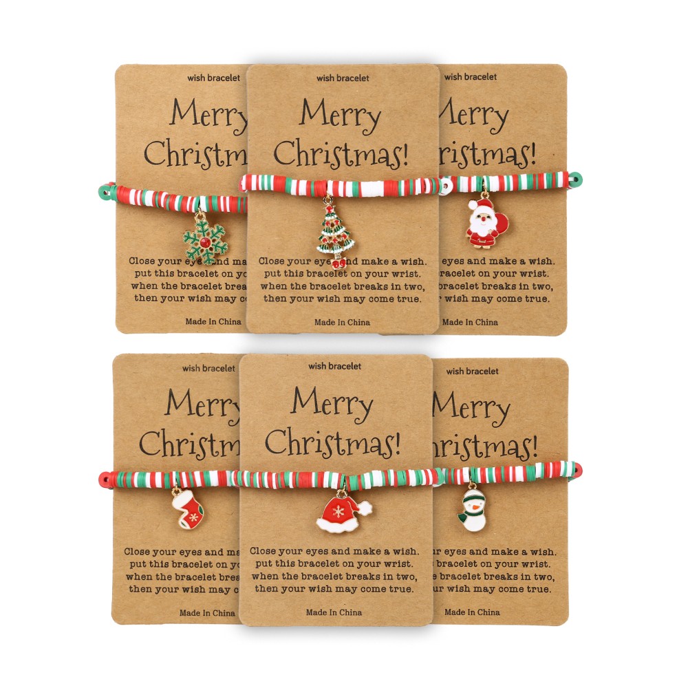 6pcs Women Heishi Surfer Merry Christmas Beaded Stretch Bracelets with Card Gift