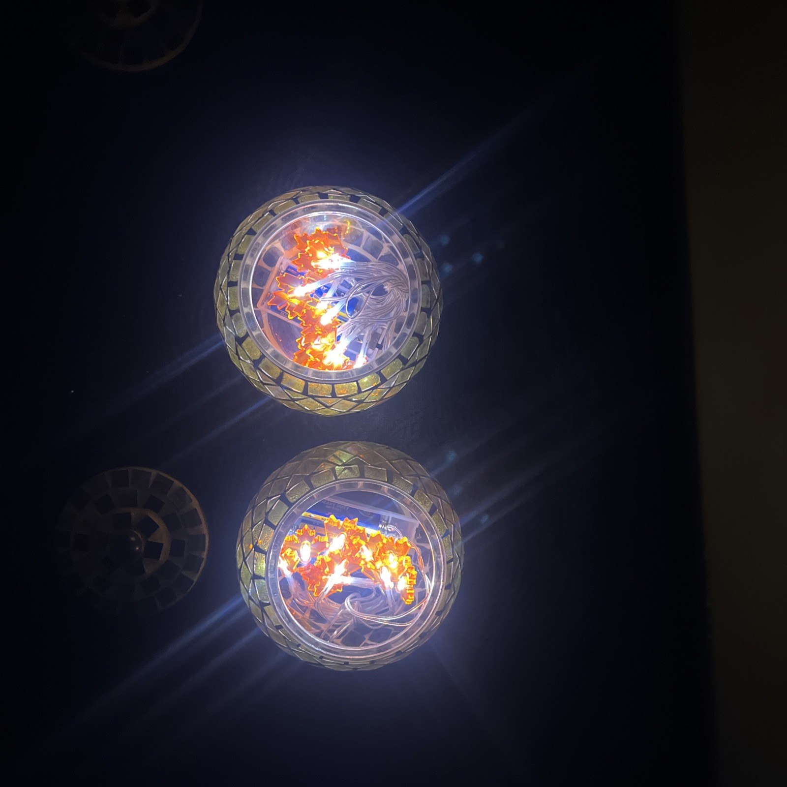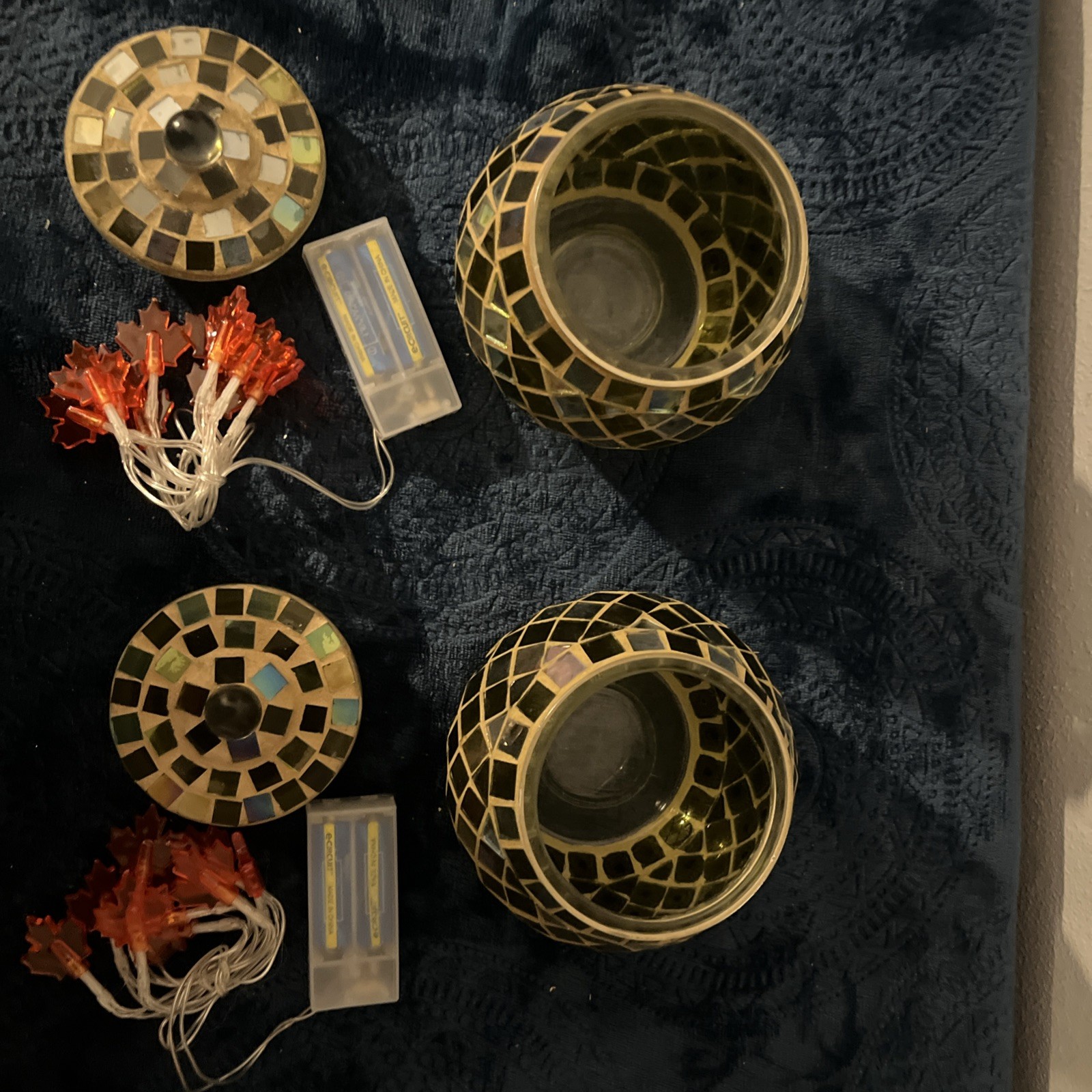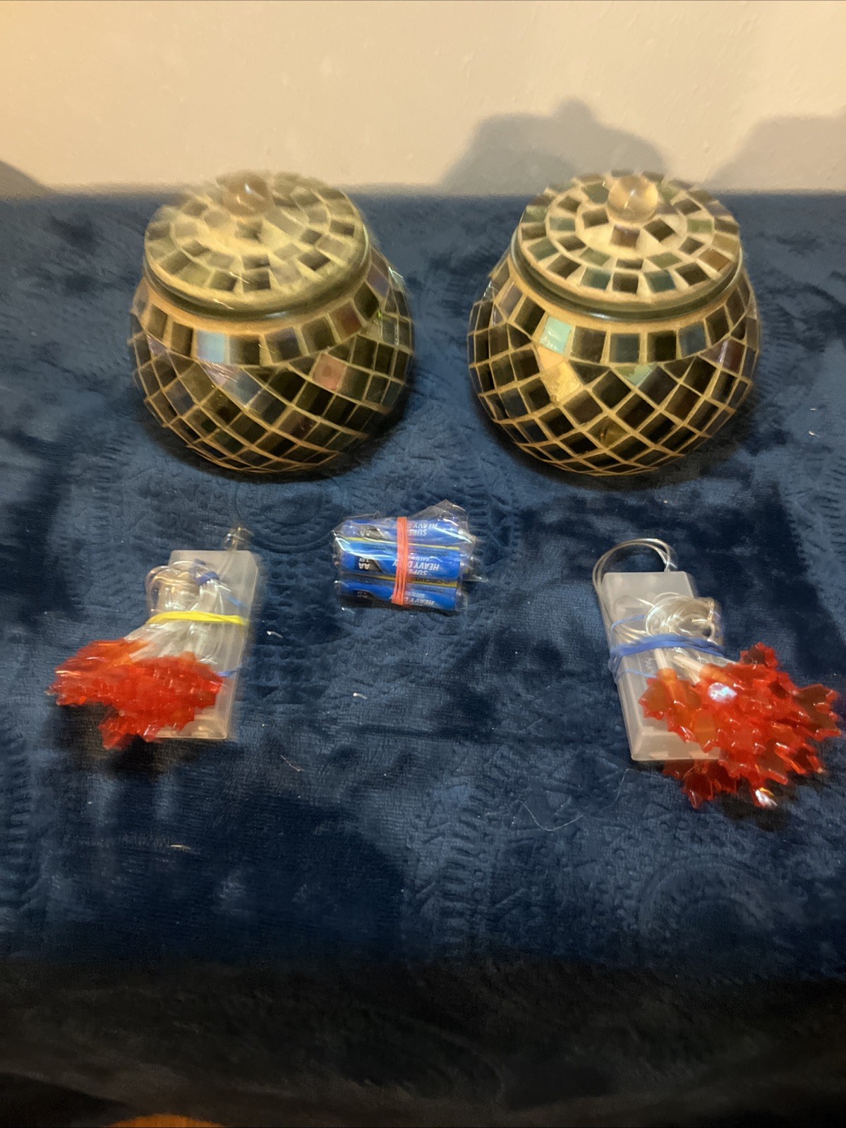 как выглядит 2 Glass Jars With Lids Handcrafted Inlaid Mosaic Tile Brilliant Display Of Light фото