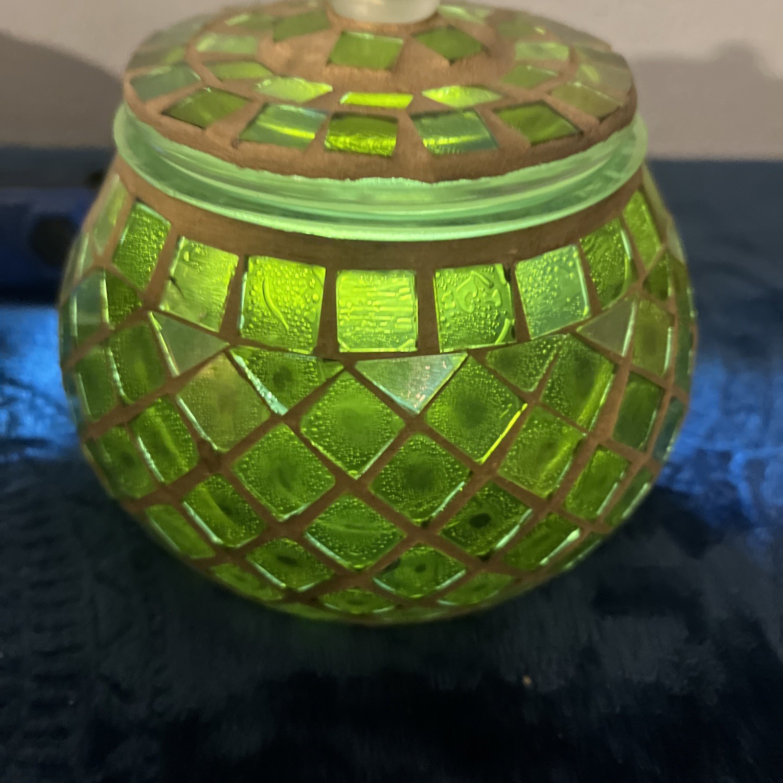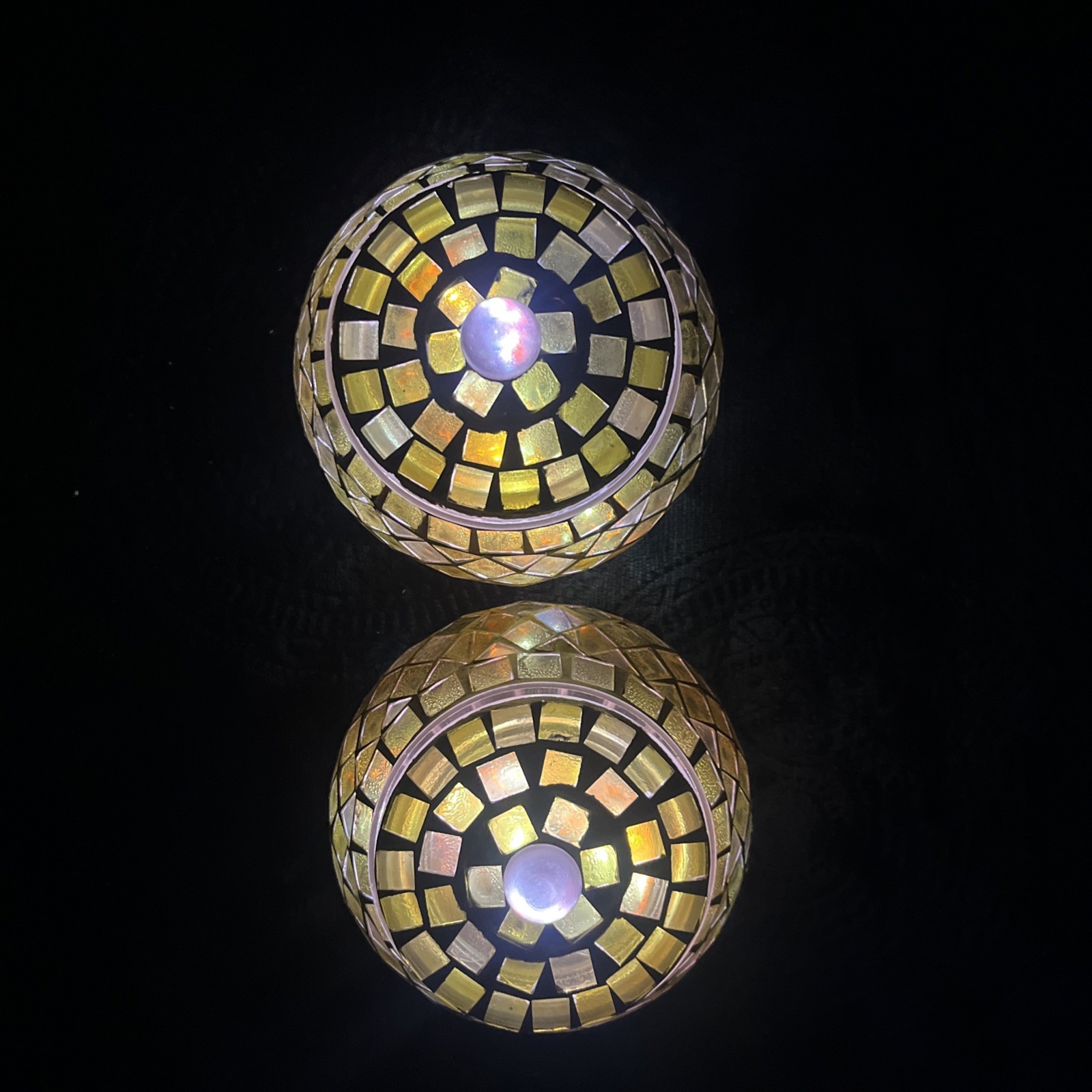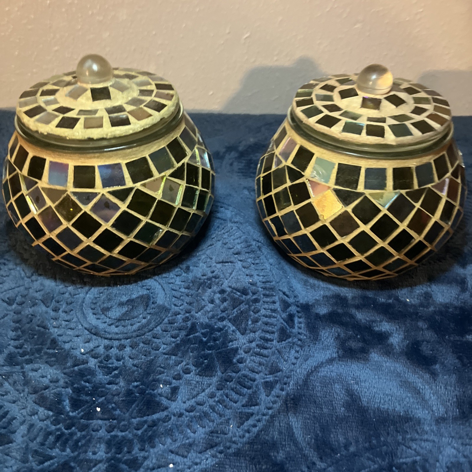 2 Glass Jars With Lids Handcrafted Inlaid Mosaic Tile Brilliant Display Of Light