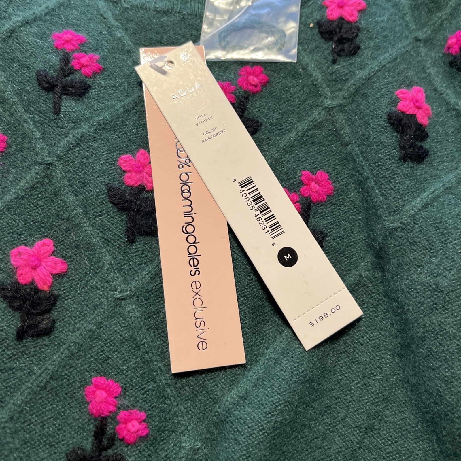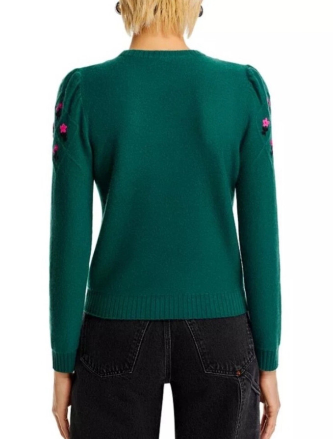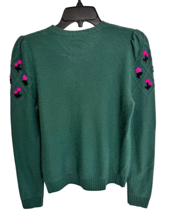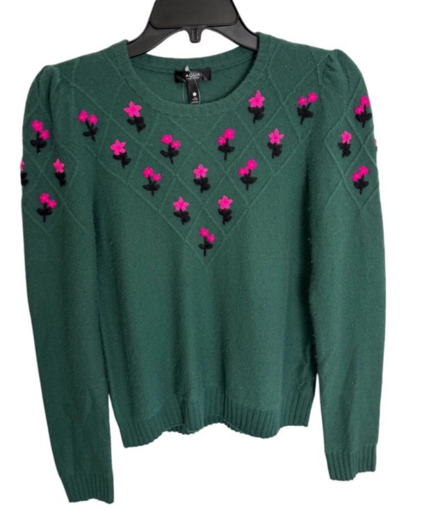 Aqua Designer 100 Cashmere Green Embroidered Crewneck Sweater -Small -msrp 198