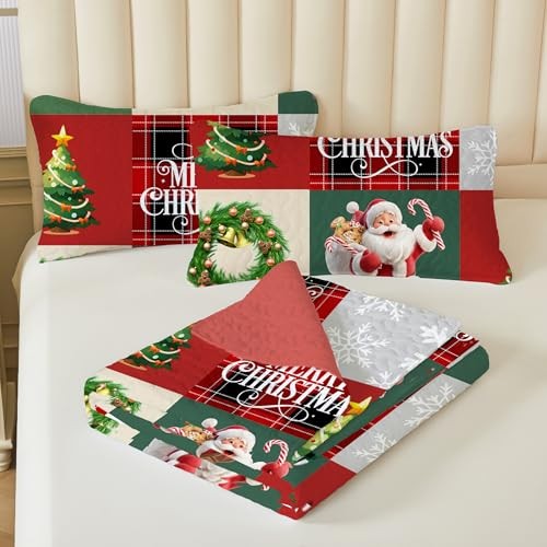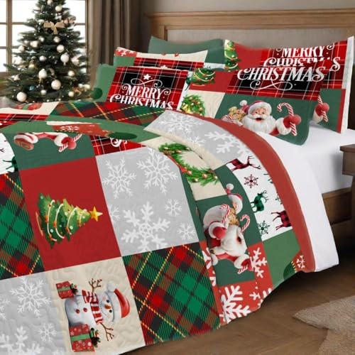 Christmas Quilt Set Size Santa Claus Snowflake Deer Buffalo King New Red Green